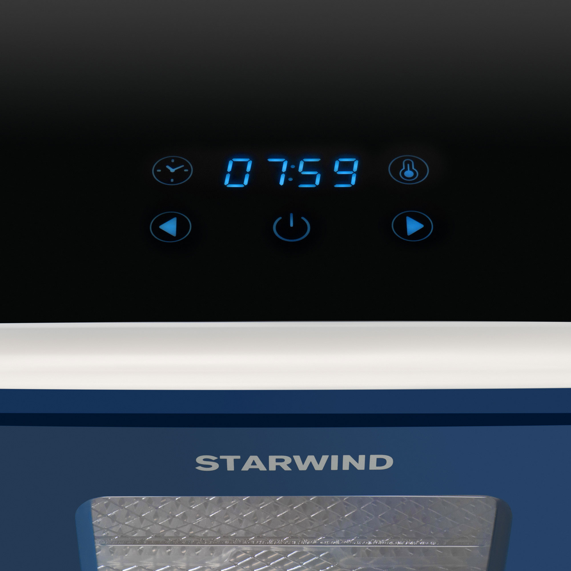 Управление Starwind SFD9535 осуществляется с помощью удобной тач-панели, расположенной на верхней части прибора. Настроить программу сушки очень просто – все функции интуитивно представлены в виде нескольких кнопок. Если во время эксплуатации возникнут вопросы, разобраться с ними поможет инструкция полностью на русском языке, поставляемая в комплекте.