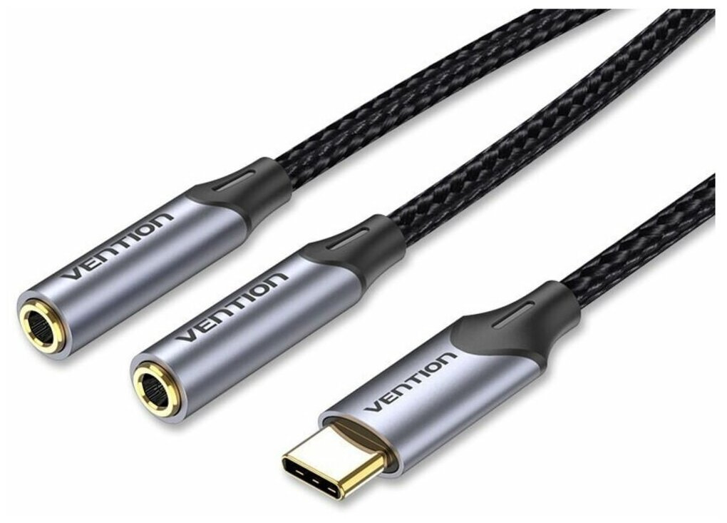 USB Type-C (m)/2xJack 3.5 (f) 0.3м. черный