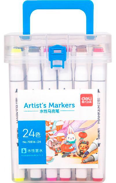 двойной пиш. наконечник 24цв. пластиковая коробка...