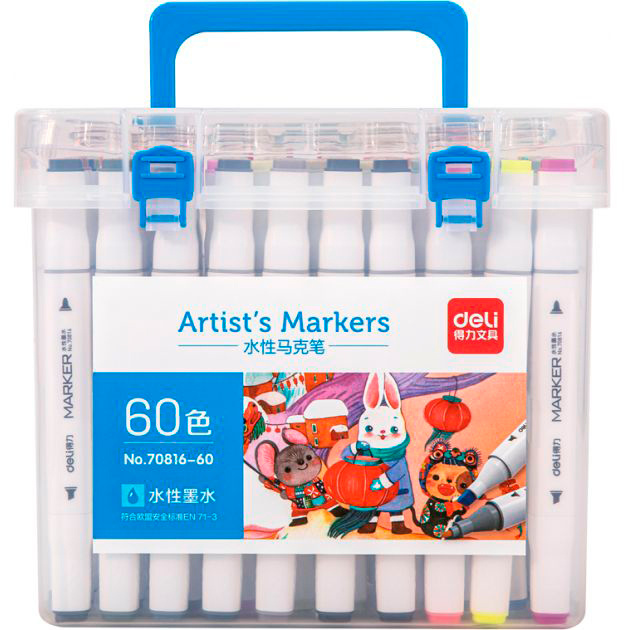 двойной пиш. наконечник 60цв. пластиковая коробка...