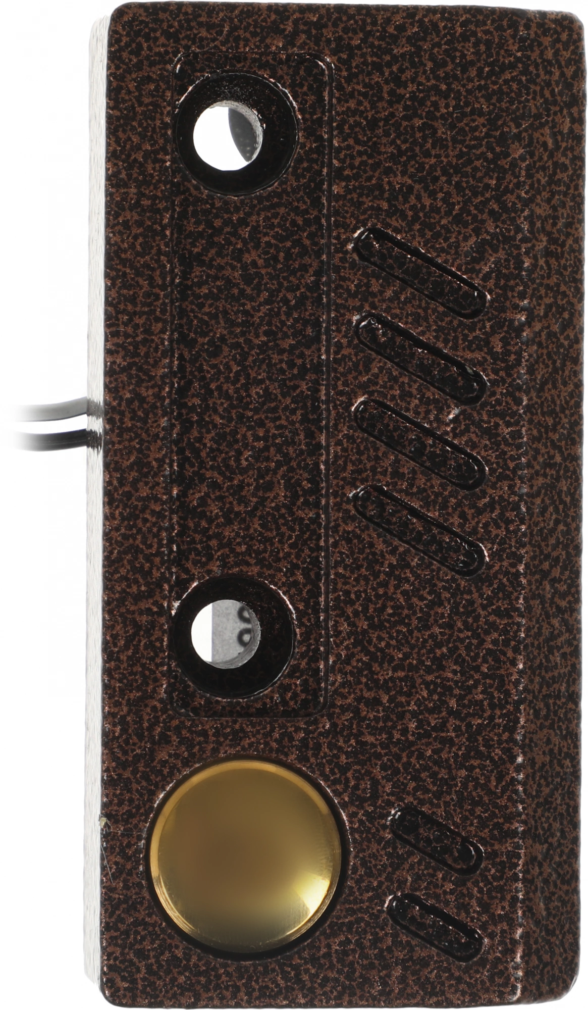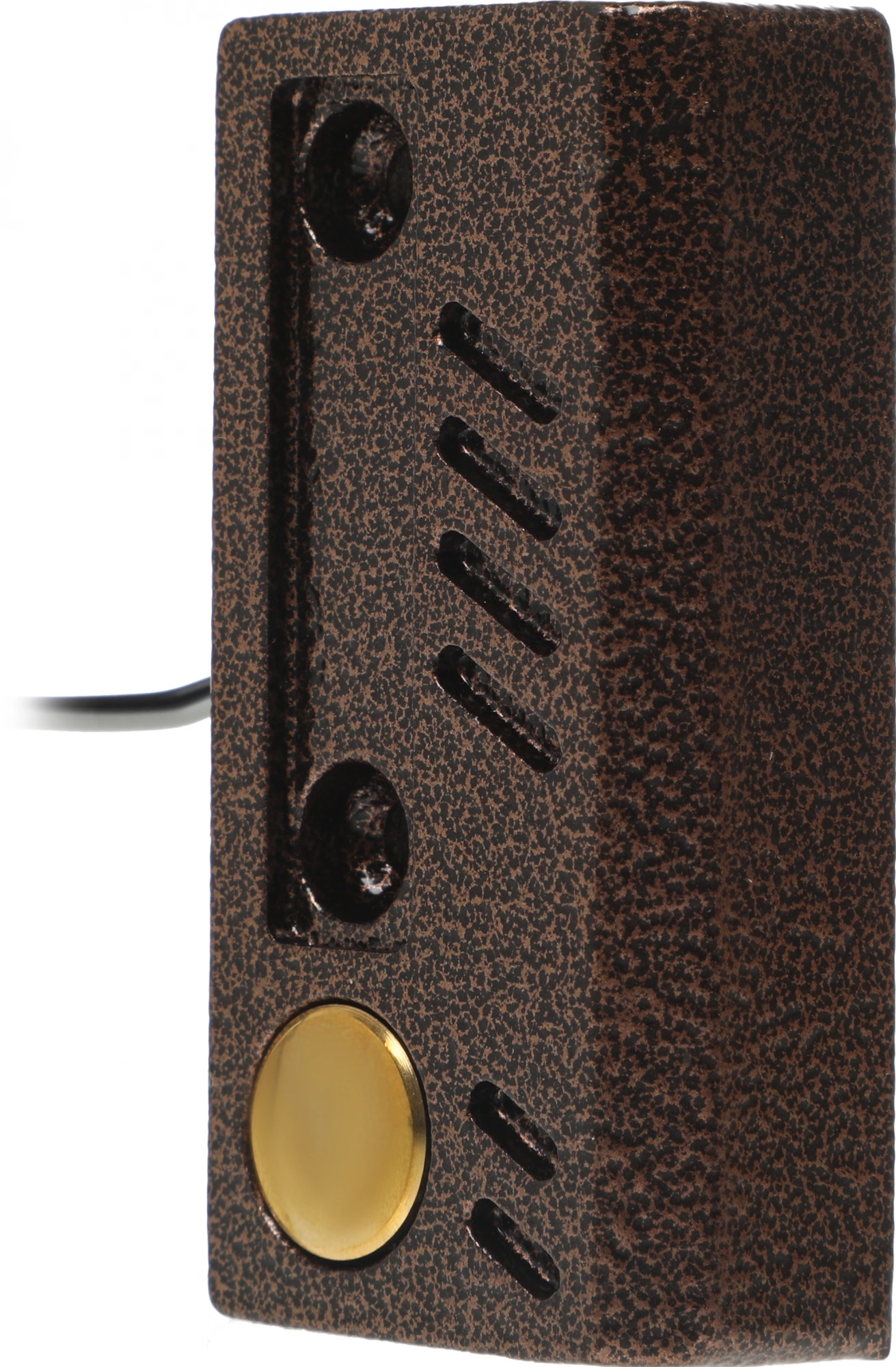 Вызывная аудиопанель AVC-109 на одного абонента в горизонтальном исполнении. Выполнена в антивандальном корпусе из алюминиевого сплава под "состаренное серебро" для накладной установки. Кнопка вызова способна выдерживать фронтальные удары благодаря особенностям внутренней конструкции.