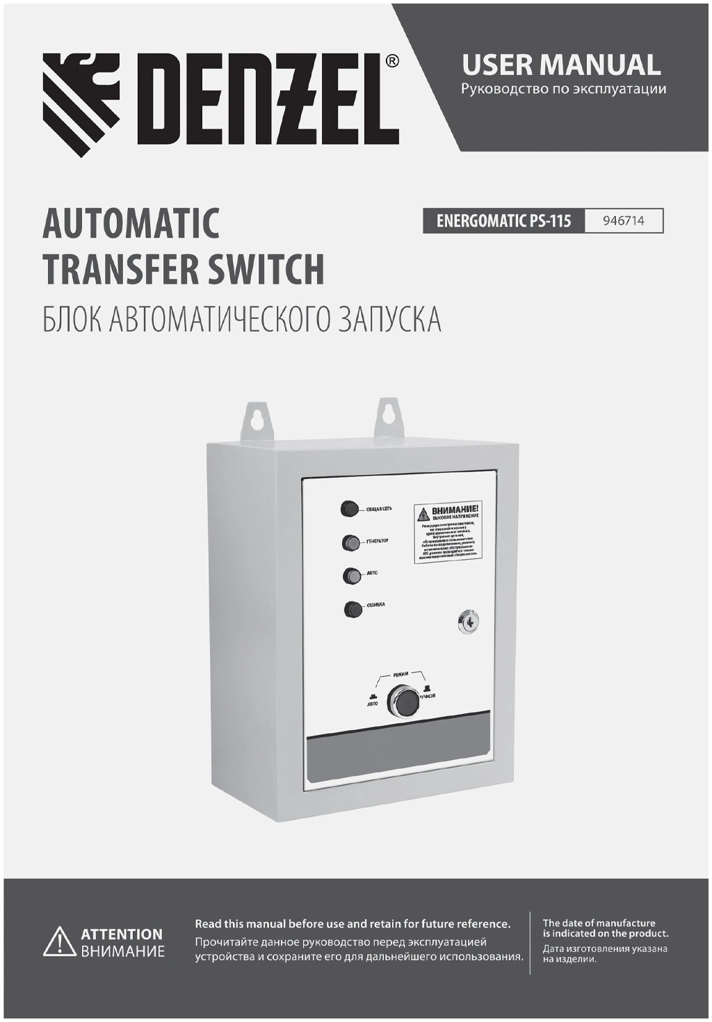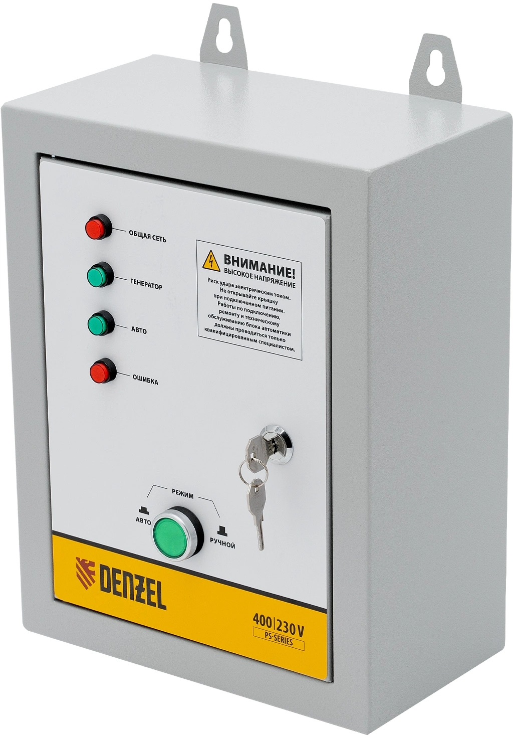 Блок Denzel ENERGOMATIC PS 115 автоматически запускает генератор при прекращении подачи электроэнергии в частных домах, дачных коттеджах, на небольших предприятиях и строительных объектах.