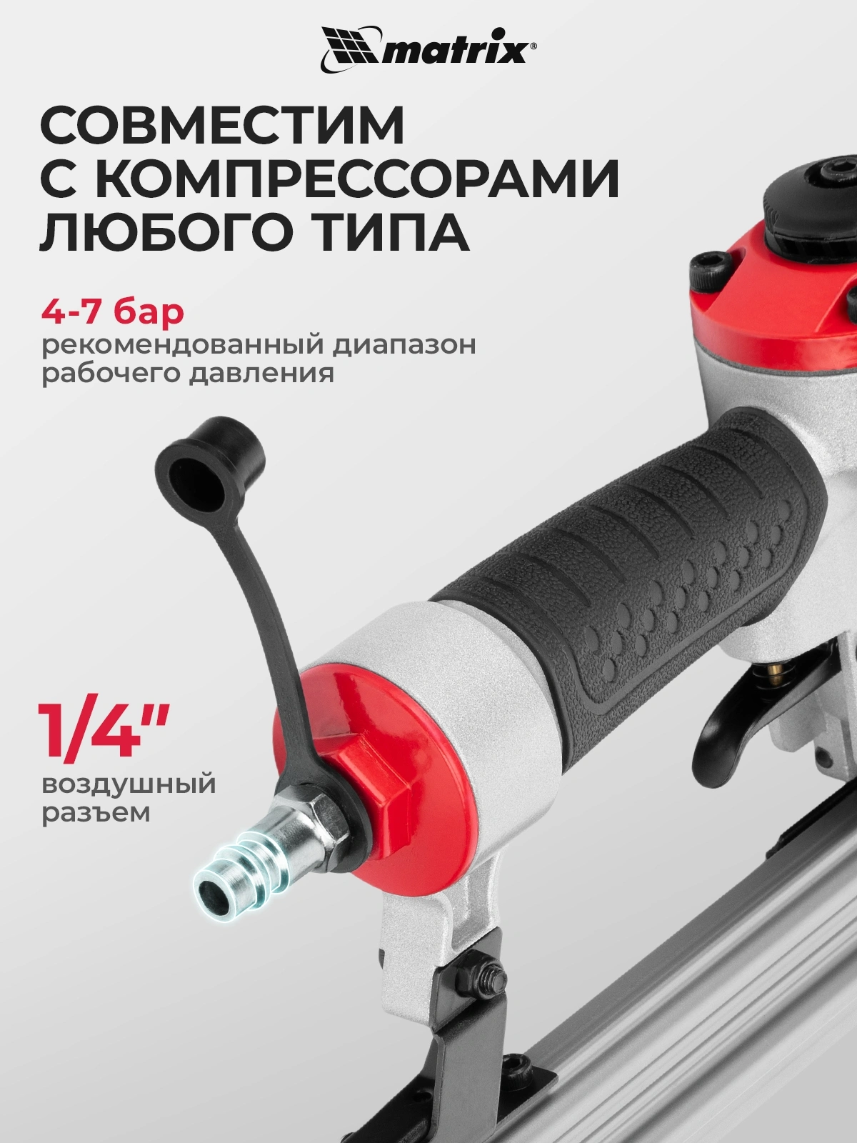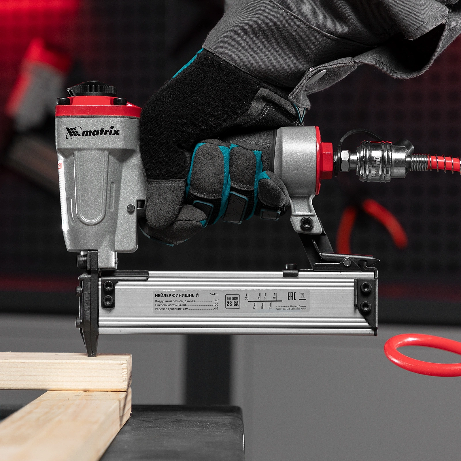 Пневматический нейлер Matrix предназначен для забивания шпилек 23GA. Он используется при проведении финишной отделки, а также при сборке мебели и упаковке. Нейлер имеет низкий расход воздуха 0,7 л/мин, поэтому работает с любым типом компрессоров.