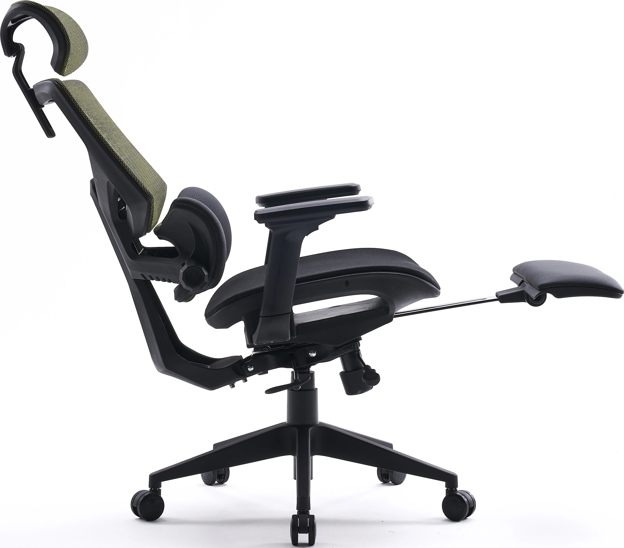 Это кресло — настоящая находка для ценителей комфорта. Изготовлено из высокопрочных материалов, пластика и сетки. Сетка мелкоячеистая, обеспечивает хорошую вентиляцию и при этом прослужит долгие годы. Элементы поддержки боковин из качественной эко-кожи. Кресло оснащено всевозможными уровнями поддержки и регулирования. Регулируемый подголовник, регулируемые в разных плоскостях подлокотники. Поддержка поясницы, спины, сиденья. Поддержка для ног, которую можно убирать и регулировать. Современный механизм качания — функционально улучшенный топ-ган, защищающий от опрокидывания и позволяющий фиксировать угол наклона в нескольких положениях. Газлифт 4 класса обеспечит поддержку до 150 кг. Настоящий помощник для любителей длительной работы и ценителей качества и заботы о себе.