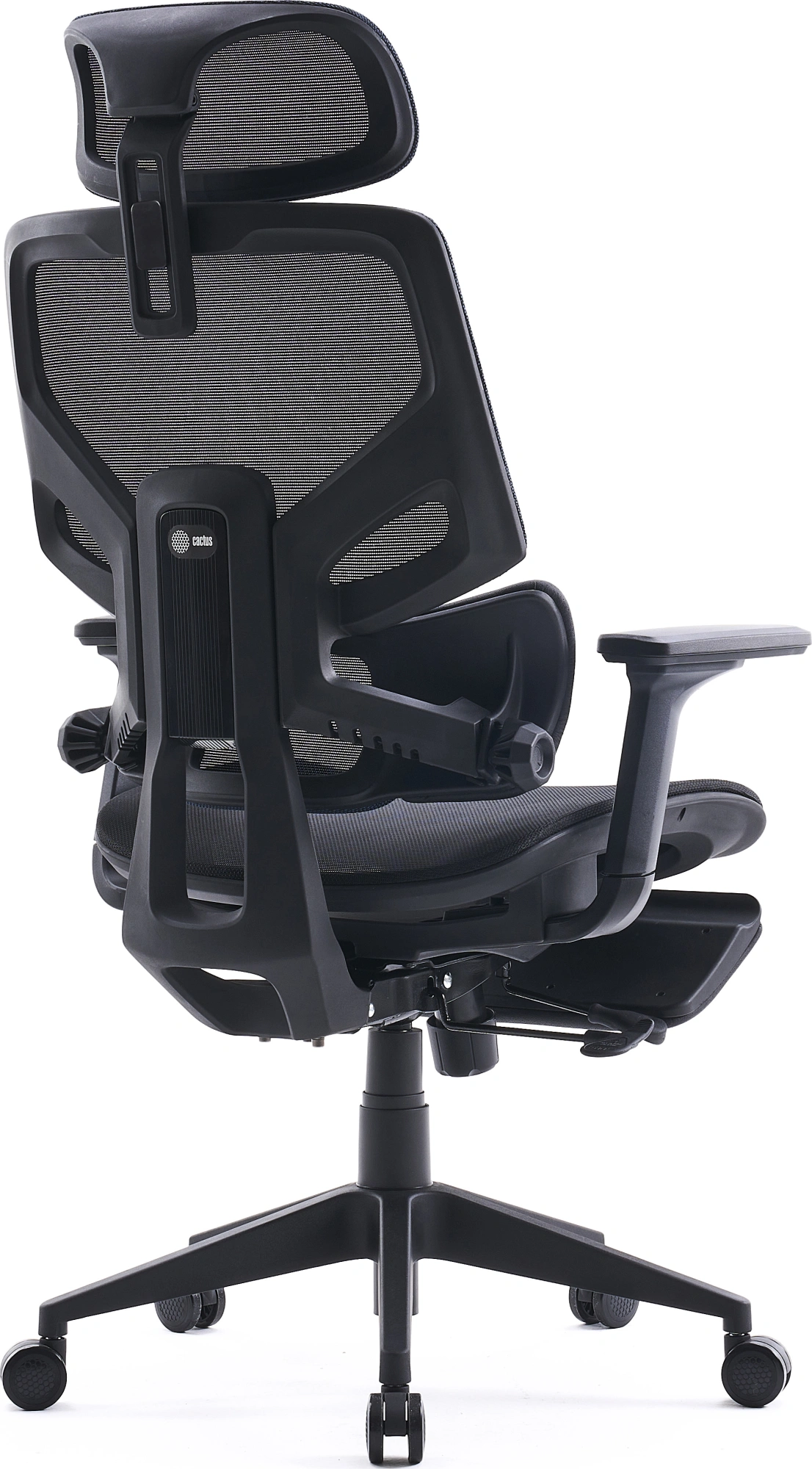 Это кресло — настоящая находка для ценителей комфорта. Изготовлено из высокопрочных материалов, пластика и сетки. Сетка мелкоячеистая, обеспечивает хорошую вентиляцию и при этом прослужит долгие годы. Элементы поддержки боковин из качественной эко-кожи. Кресло оснащено всевозможными уровнями поддержки и регулирования. Регулируемый подголовник, регулируемые в разных плоскостях подлокотники. Поддержка поясницы, спины, сиденья. Поддержка для ног, которую можно убирать и регулировать. Современный механизм качания — функционально улучшенный топ-ган, защищающий от опрокидывания и позволяющий фиксировать угол наклона в нескольких положениях. Газлифт 4 класса обеспечит поддержку до 150 кг. Настоящий помощник для любителей длительной работы и ценителей качества и заботы о себе.