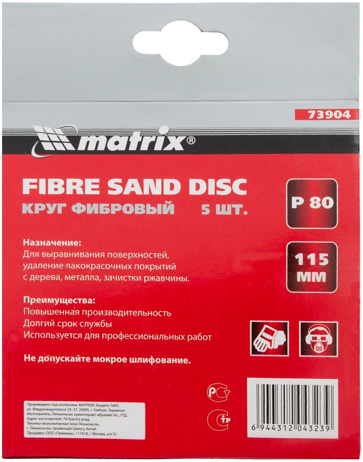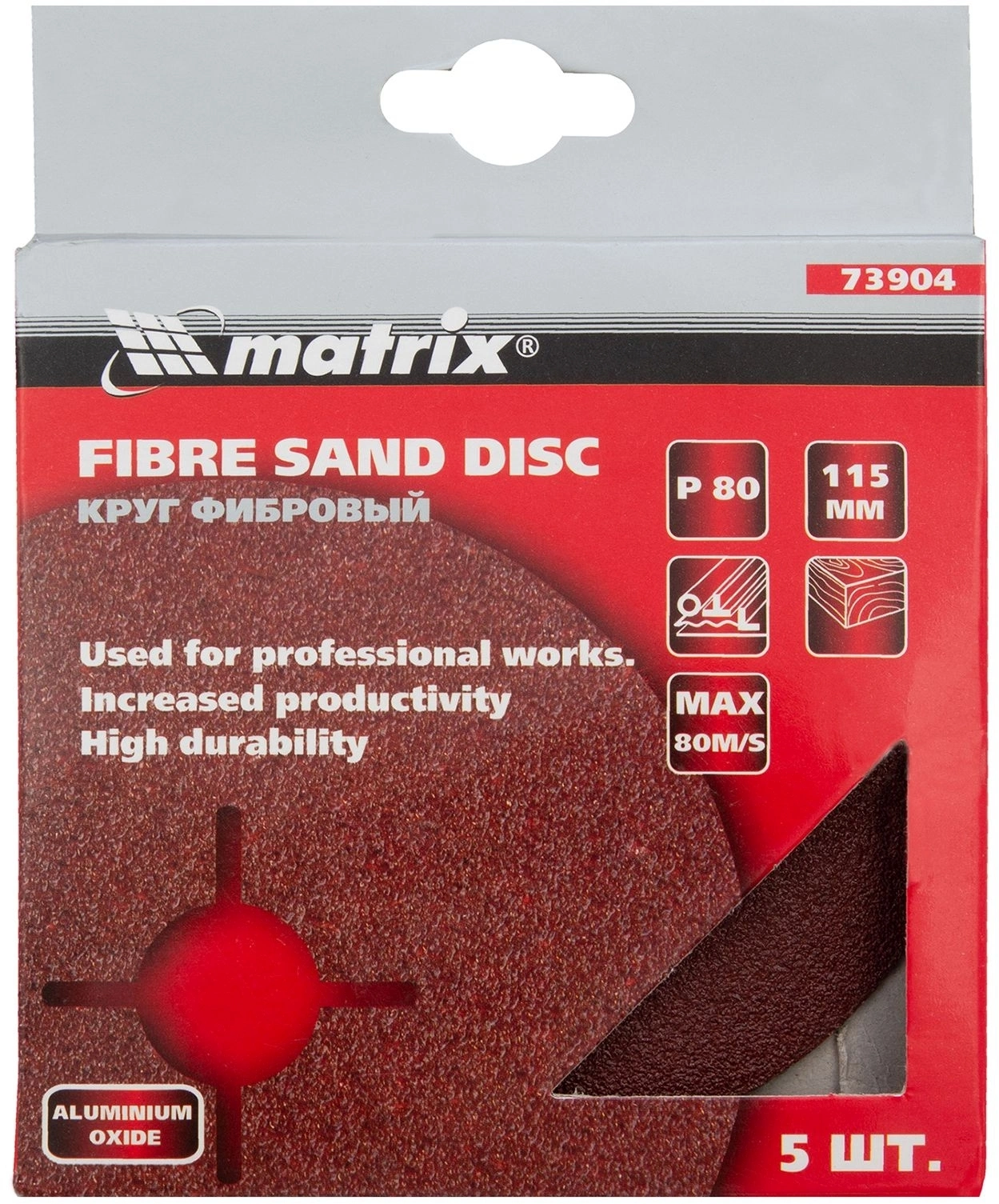Фибровый круг Matrix Р80 арт. 73904 предназначен для стационарных или ручных шлифовальных машин с посадочным размером 115 мм.