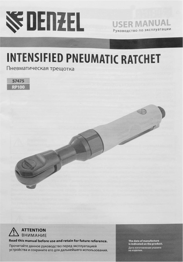 Усиленная пневмотрещотка Denzel RP100 57475, 160 об/мин, с квадратным хвостовиком 1/2 дюйма, — незаменимый помощник в автосервисе, слесарном цехе, на шиномонтаже, в частной мастерской, и в любом деле, где нужен монтаж и демонтаж резьбового крепежа.