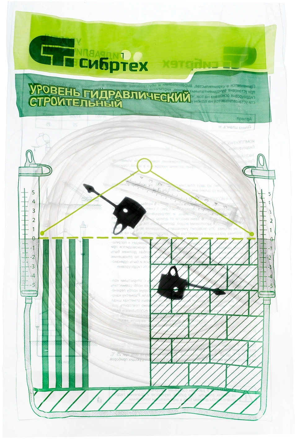 Гидроуровень Сибртех 37042 со шкалой и шлангом диаметром 8 мм используется для выравнивания объектов, расположенных на расстоянии до 5 м. друг от друга.