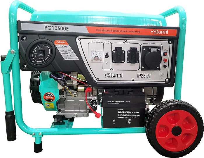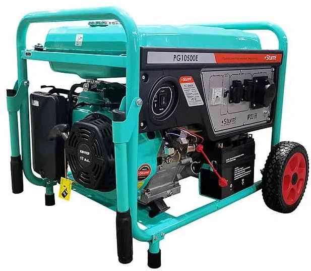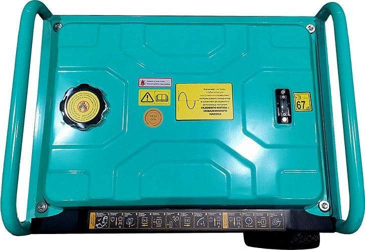 Для работы генератора подходит бензин АИ-92. Система защиты от низкого уровня масла предотвратит работу двигателя без масла не позволит выйти ему из строя. Стартер ручной/электро. Электростарт реализован в виде кнопки -исключается возможность потери ключей.