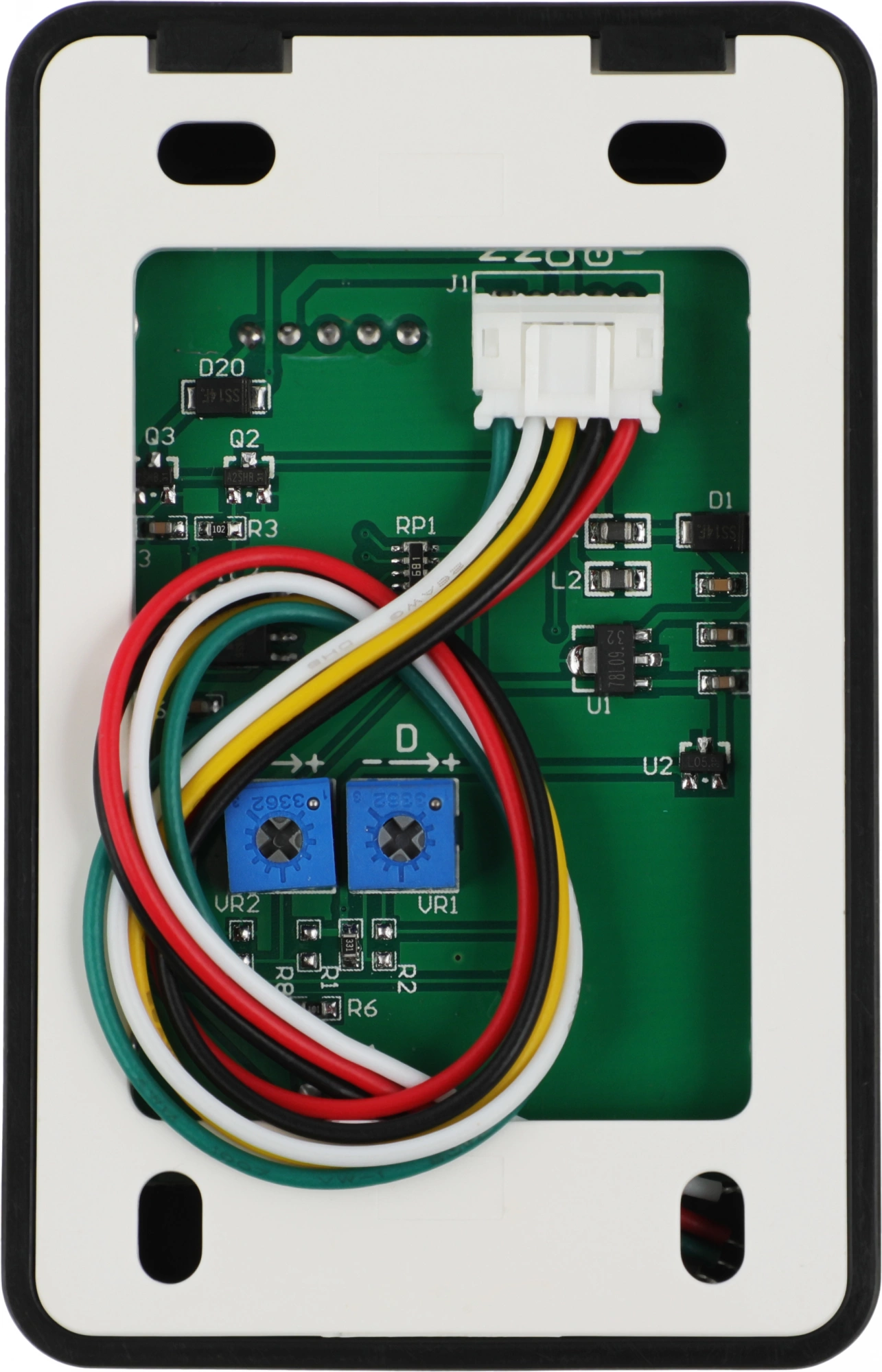 Сенсорная кнопка выхода из пластика с индикацией. Наработка на отказ – 500 000 циклов. Бесконтактное срабатывание – на расстоянии 5–20 см.