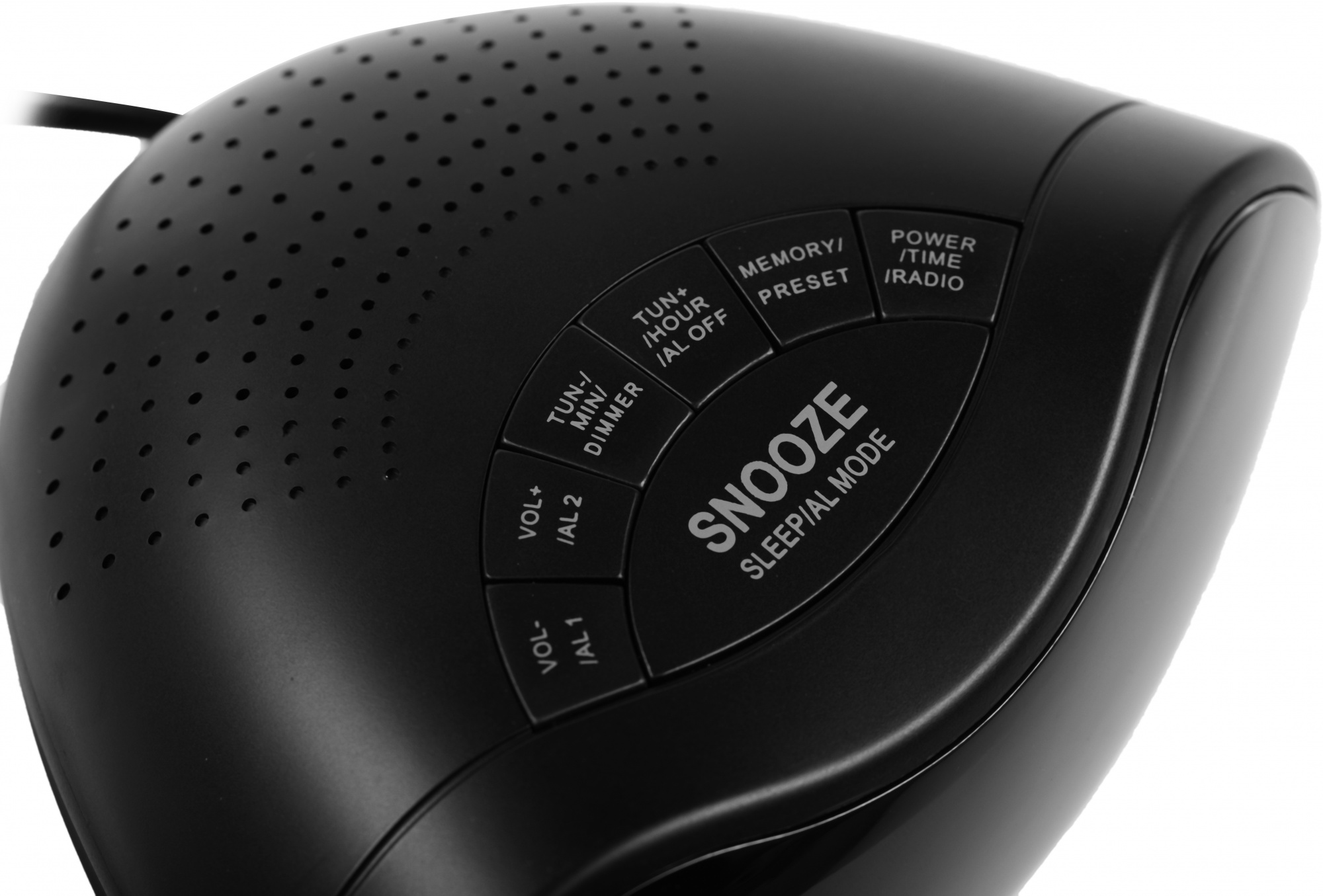 Светодиодный дисплей девайса имеет диагональ 0.6 дюйма. Время на нём отлично различается при любом освещении, но подсветка не раздражает глаза и не мешает спать по ночам. Корпус окрашен в матовый чёрный и включает все основные кнопки для управления работой прибора, они располагаются сверху, над экраном.