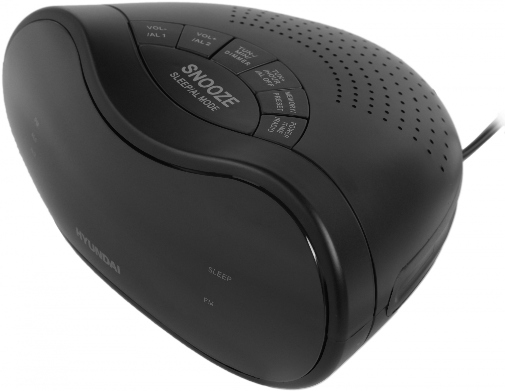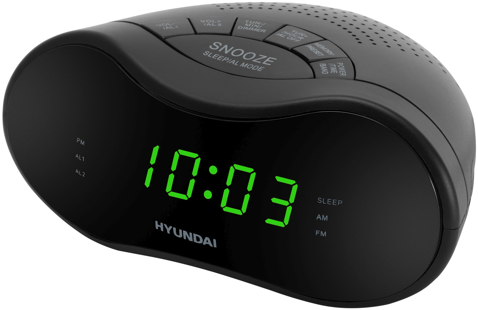Цифровые часы Hyundai H-RCL200 выполнены в оригинальном обтекаемом дизайне и лаконичном чёрном цвете.