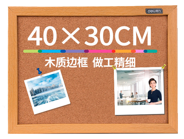 Пробковая демонстрационная доска DELI с деревянной рамой компактного размера 30х40см. Информационный материал прикрепляется с помощью кнопок или булавок.