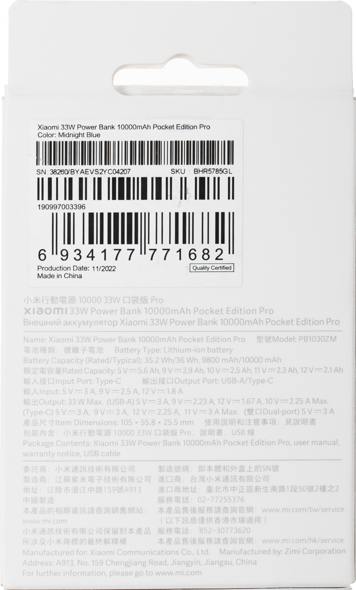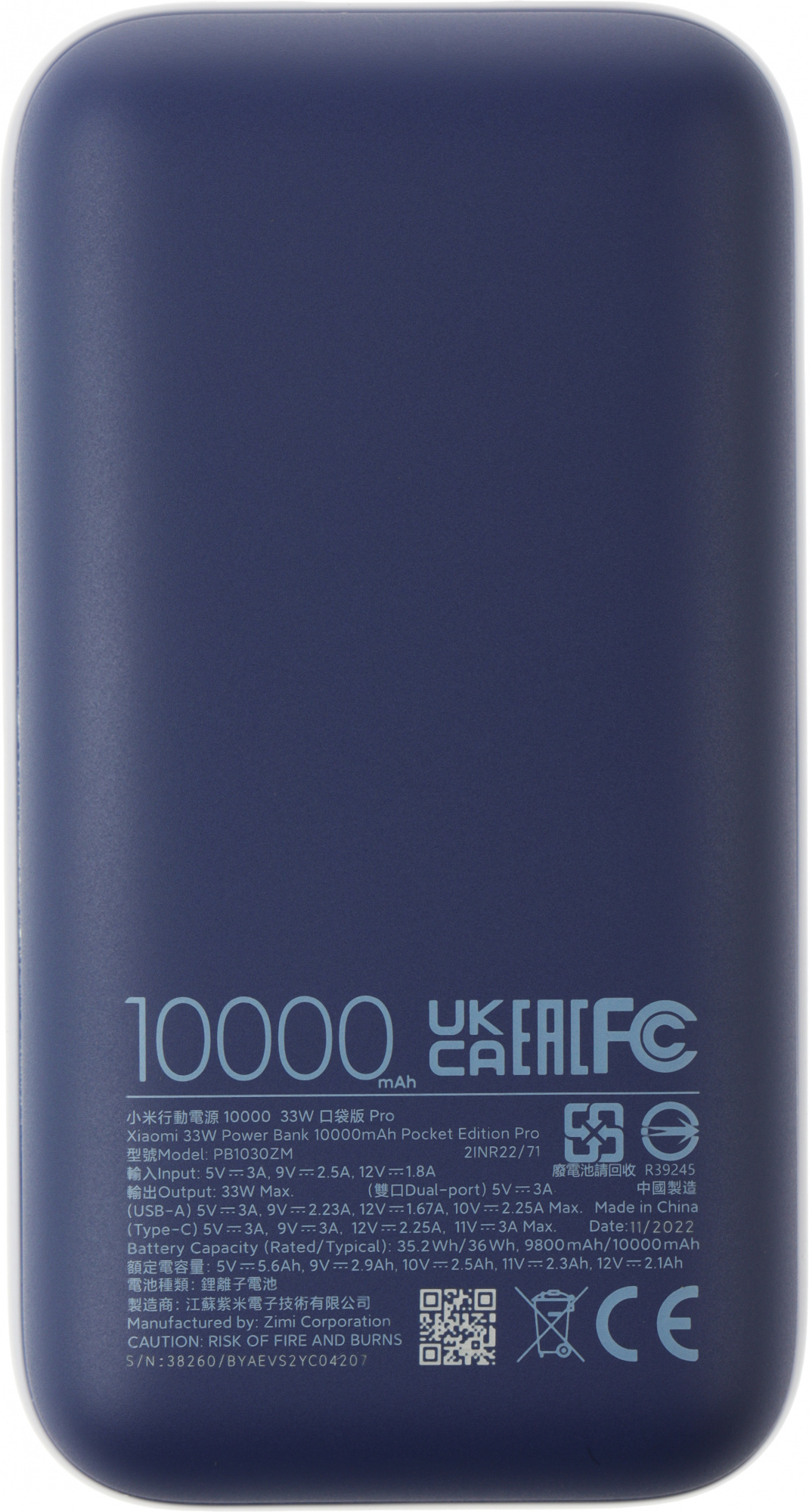 10000mAh PD 22.5W 3A USB-A/USB-C синий (BHR5785GL...