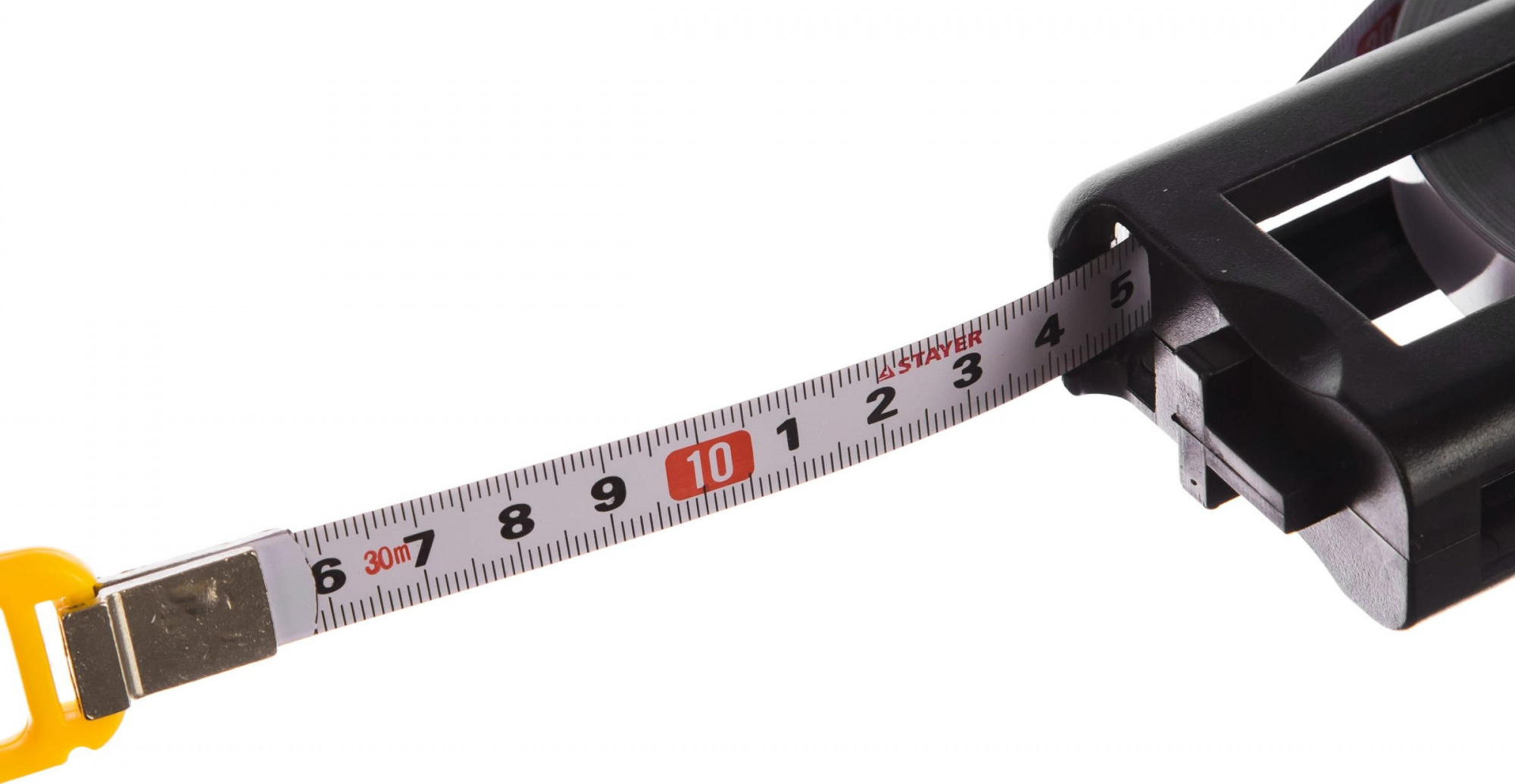 STAYER LEADER 30 м. геодезическая стальная мерная лента. Ширина полотна - 13 мм.
