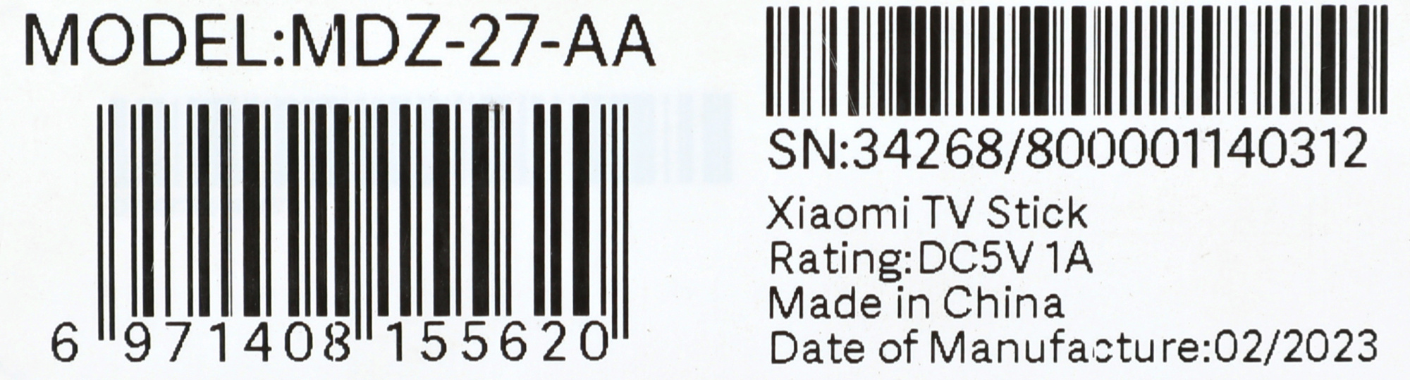 Xiaomi TV Stick 4K x 1; Пульт дистанционного управления x 1; Адаптер питания x 1; Руководство пользователя x 1; Удлинитель HDMI x 1