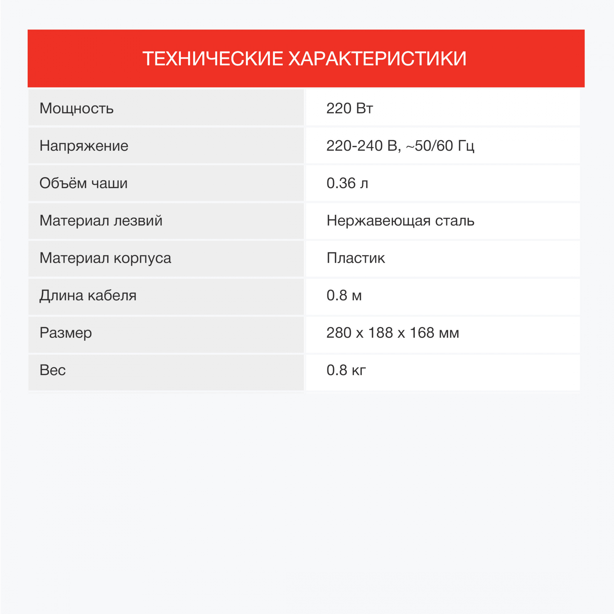 С помощью данной модели можно в считанные мгновения приготовить вкусный и питательный смузи, суп-пюре или другое блюдо. По нажатию единственной кнопки две пары ножей из нержавеющей стали придадут продуктам внутри чаши необходимую консистенцию. Материал для них был выбран неслучайно – он устойчив к образованию ржавчины и надежен. Мощность прибора составляет 250 Вт, он работает на единственной скорости и не предусматривает никакой настройки для простоты применения.