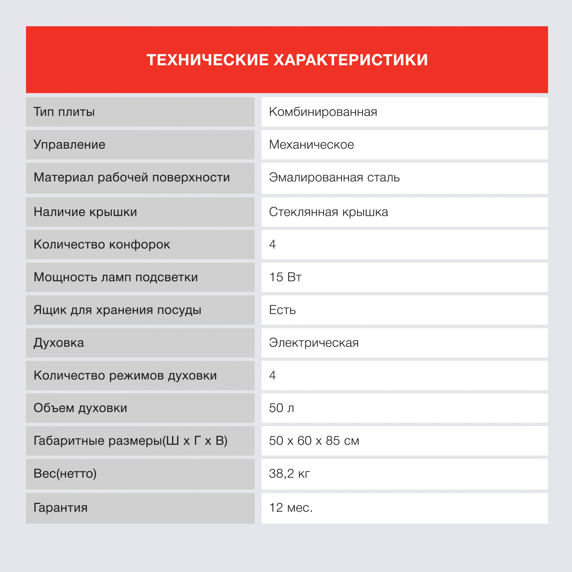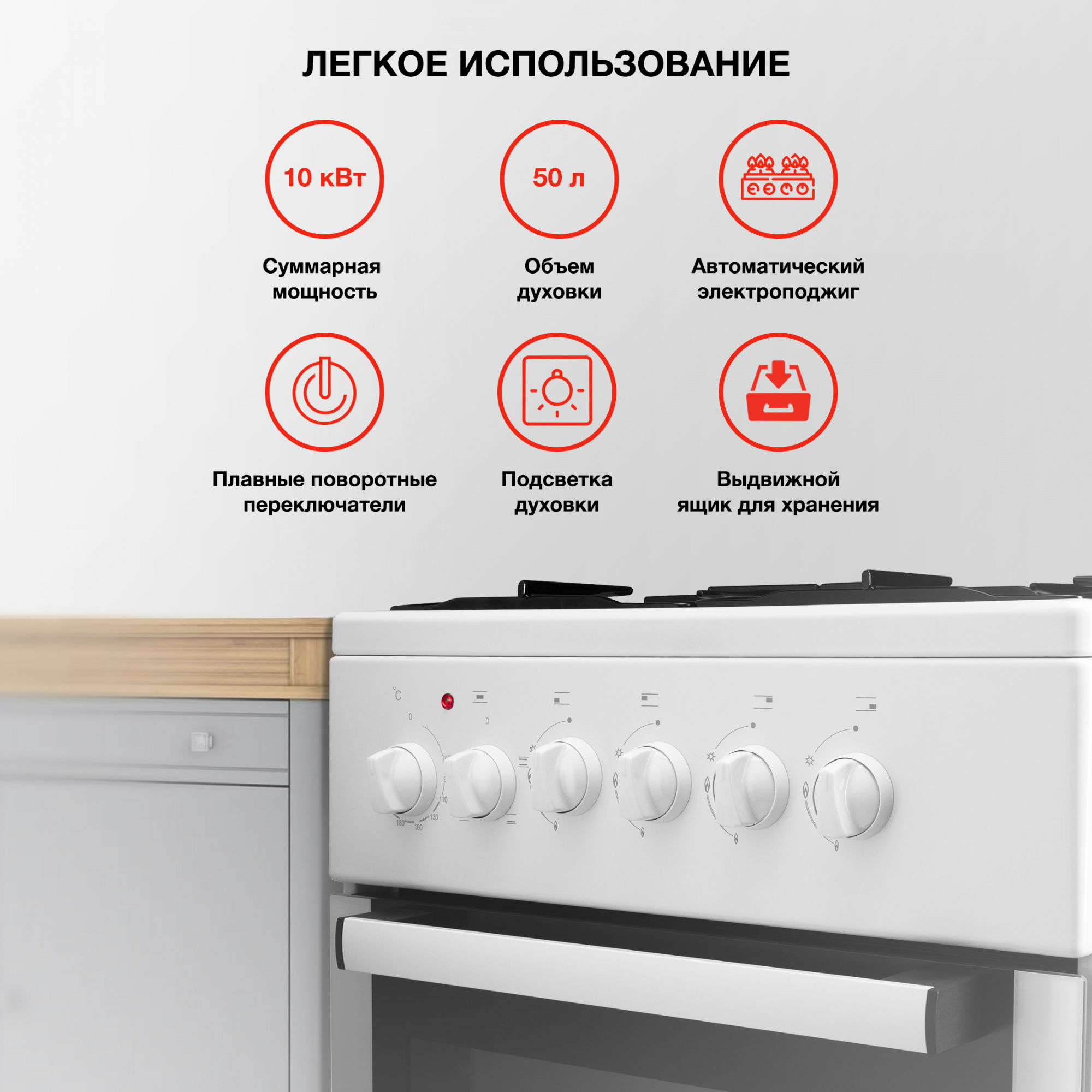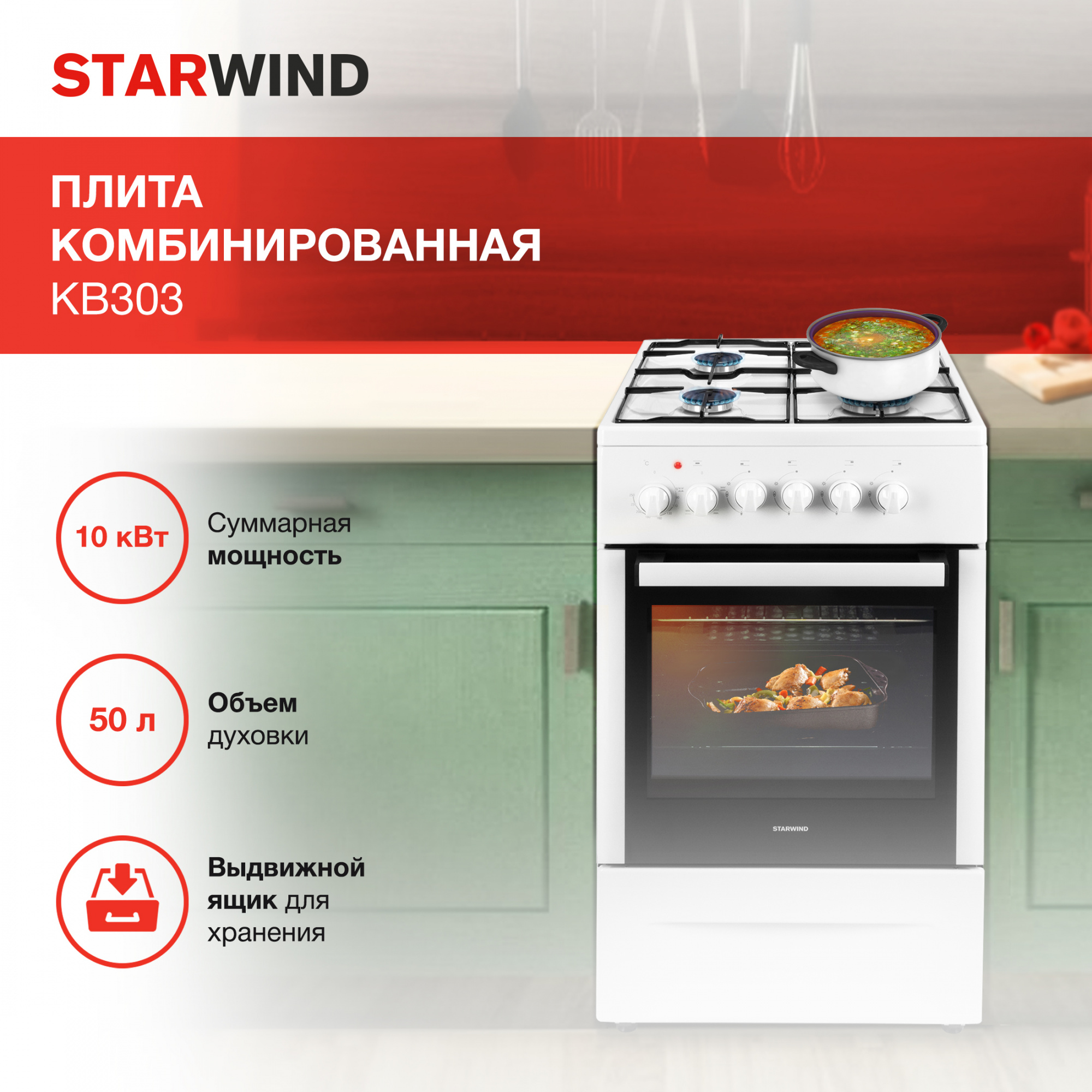 Для комфортного приготовления пищи в комбинированной плите StarWind KB303 предусмотрены решения, которые будут полезны любой хозяйке: