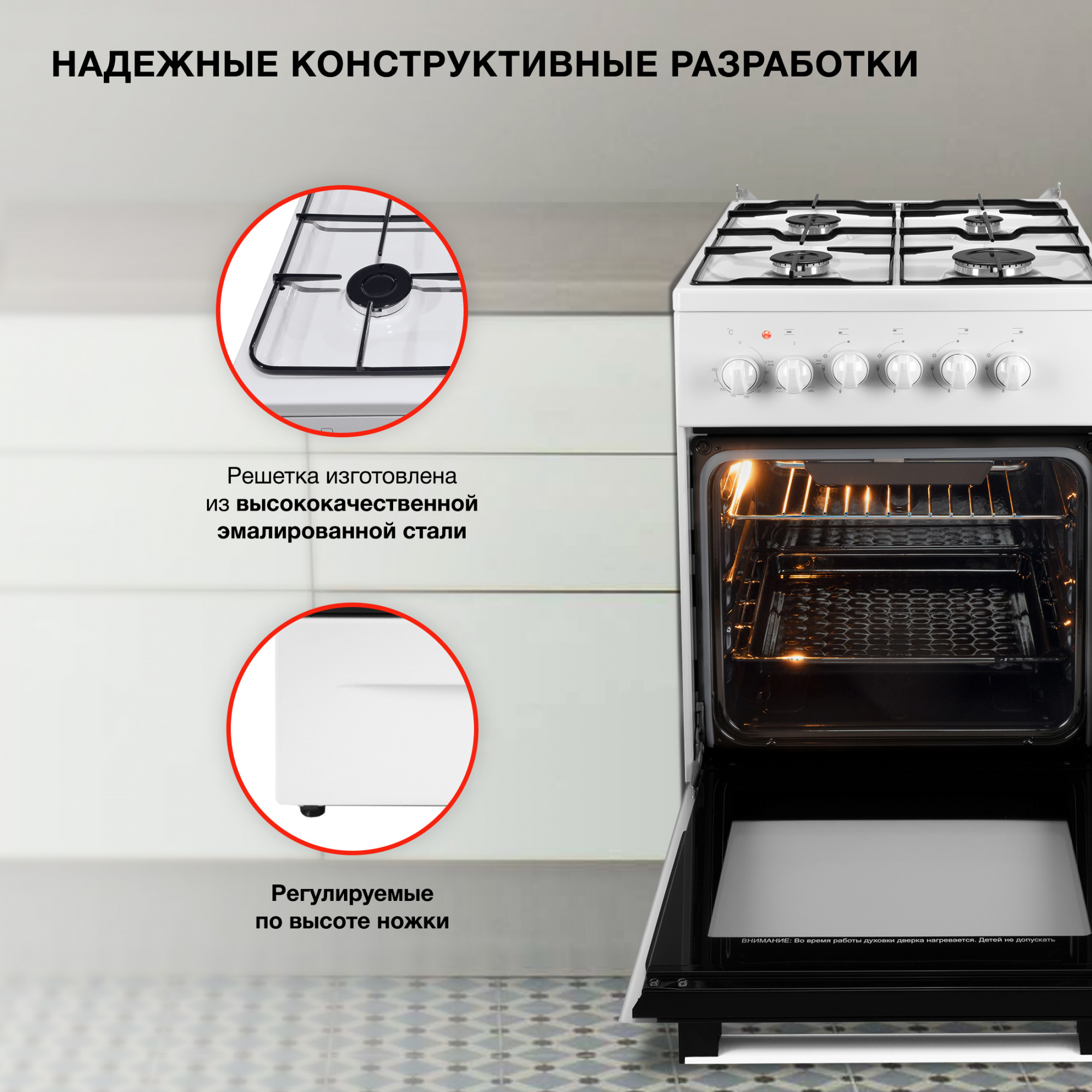 - Эмалевое покрытие рабочей поверхности легко очищается;