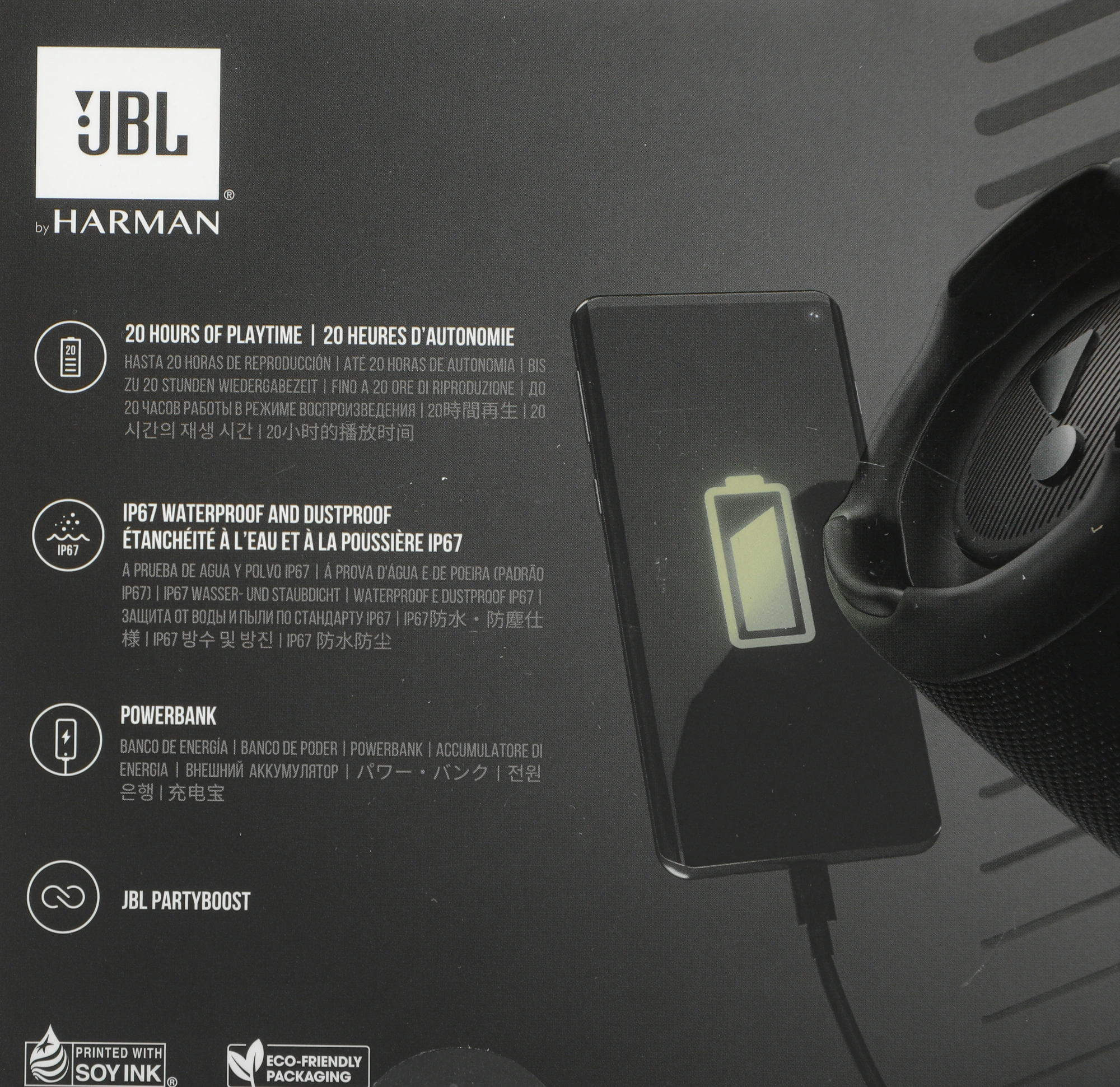 Колонка JBL Charge 5 — это легендарный звук JBL с оптимизированным динамиком с длинным ходом, отдельным высокочастотным динамиком и двумя фирменными пассивными излучателями JBL. До 20 часов работы и удобная зарядка внешних устройств, чтобы веселиться всю ночь. Защита от воды и пыли класса IP67.