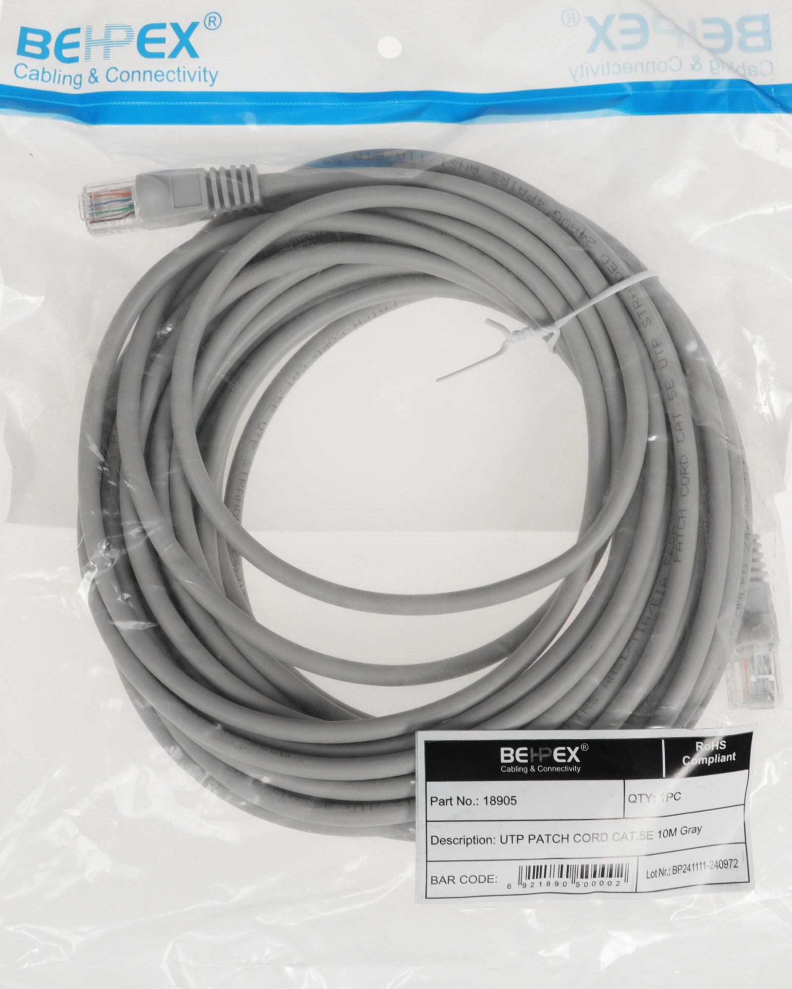 Патч-корд cat.5E stranded molded 10м серый RJ-45 (m)-RJ-45 (m)