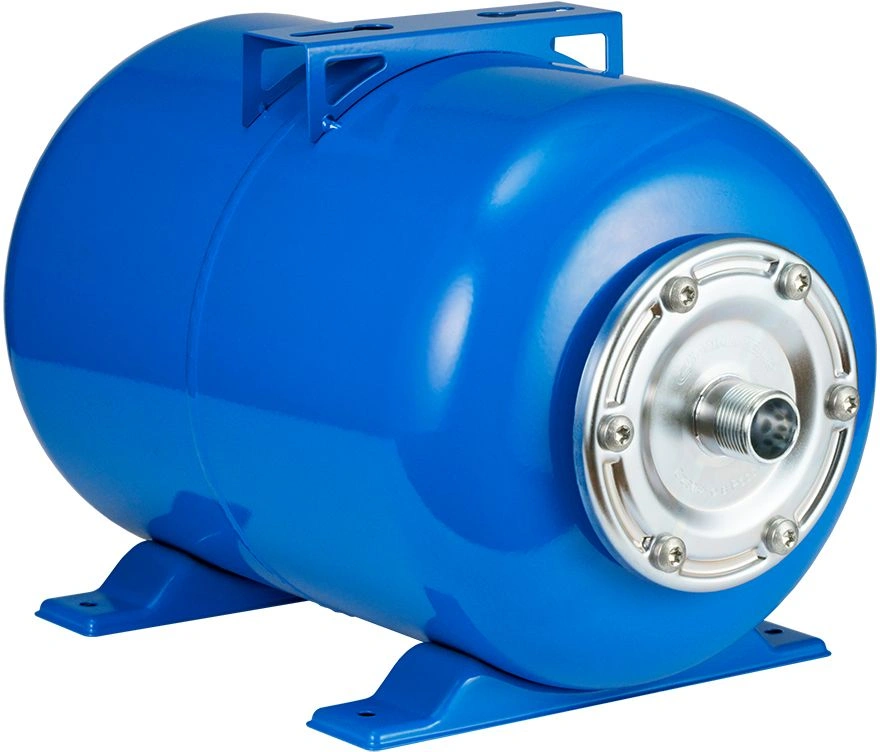Предохраняет насос от частого включения. Снижает вероятность появления гидроудара в системе. При отключении напряжения выдает накопленный запас воды. Корпус из высококачественной стали. Воздушный клапан контроля давления воздуха. Универсальная площадка для крепления насоса. Горизонтальная компоновка
