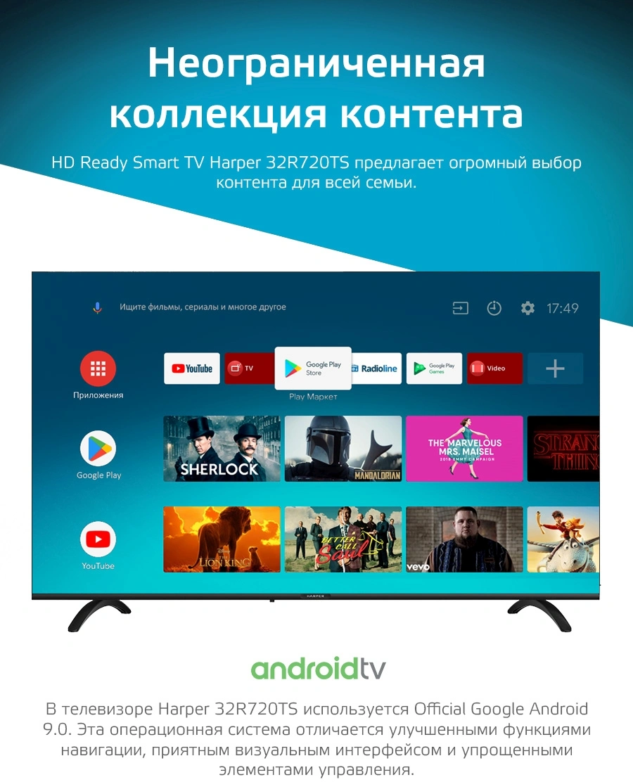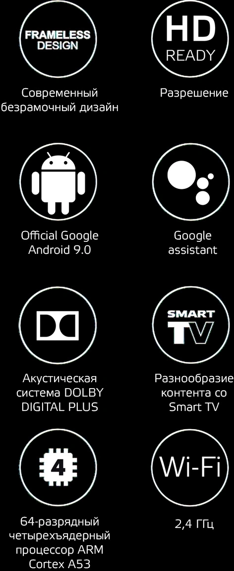 Android TV черный HD 60Hz DVB-T DVB-T2 DVB-C DVB-C...