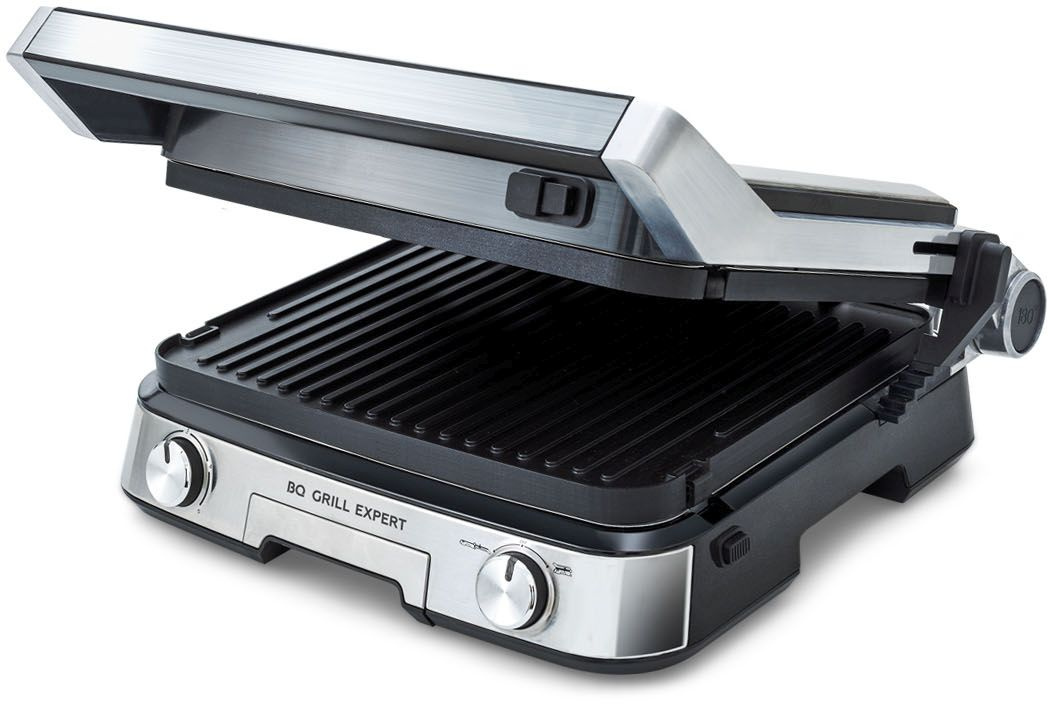 Плавная регулировка температуры от 115°C до 205 °C, открытие крышки возможно на 110° и 180°, 2 съемные панели с антипригарным покрытием