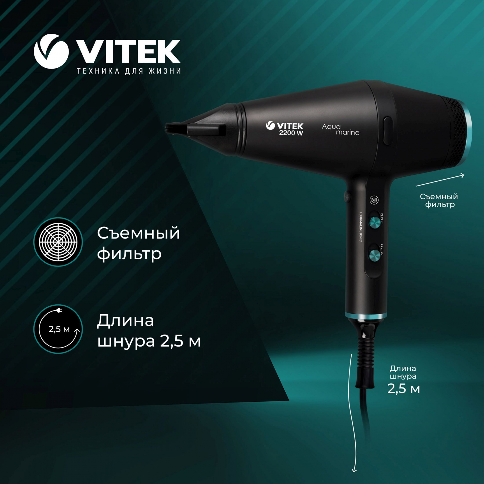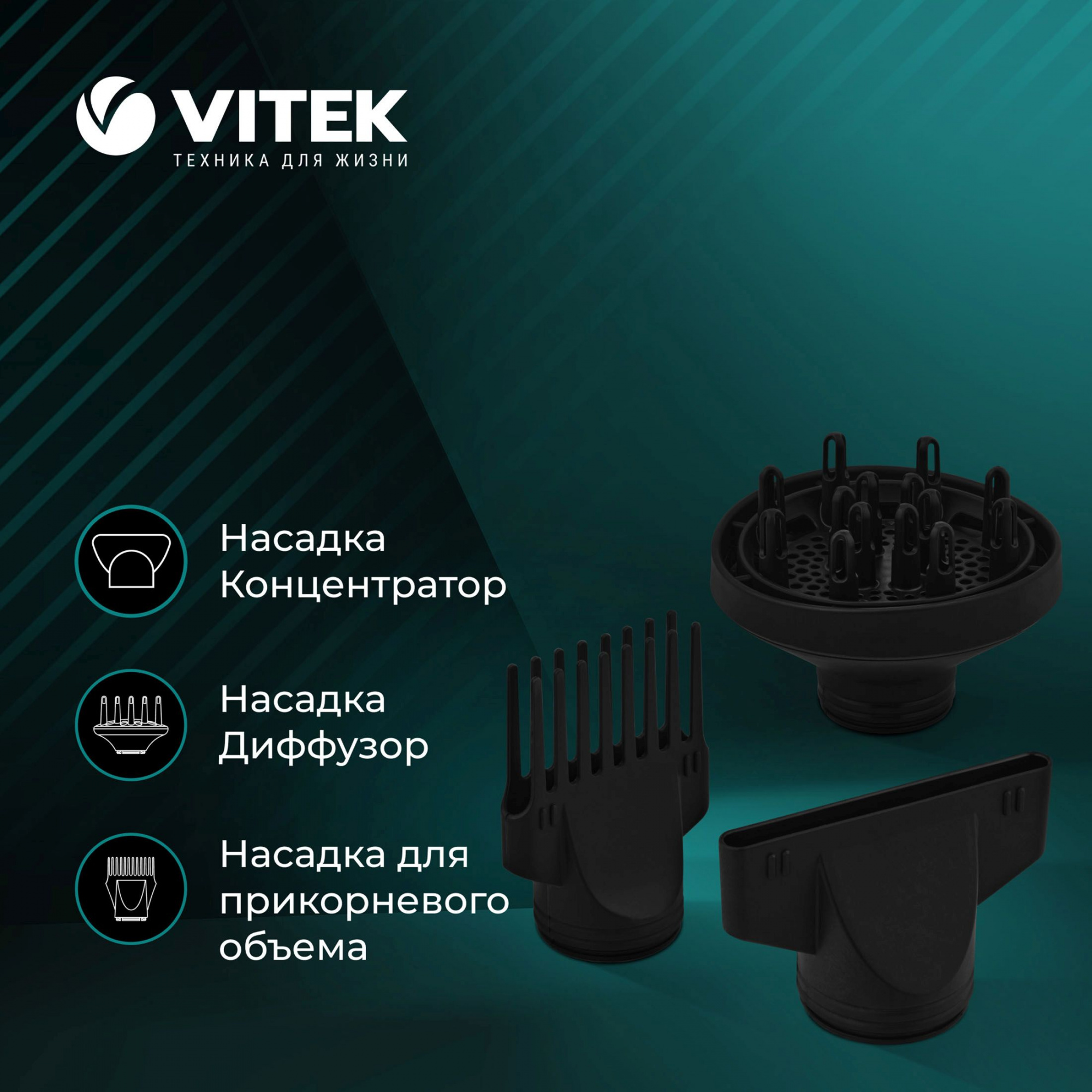 Фен VITEK VT-2378 с максимальной мощностью 2200 Вт по достоинству оценят все, кто следит за последними достижениями техники в области красоты и здоровья. Прибор оснащен профессиональным BLDC-мотором, который обеспечивает устройству беспрецедентную надежность и долговечность в работе. Этому же способствует и защита от перегрева, также предусмотренная в приборе. Решетка фена имеет инновационное покрытие Tourmaline Ionic, образующее при нагревании отрицательные ионы, которые снимают статическое электричество и буквально запечатывают чешуйки волос. Благодаря этому, а также технологии Avocado Oil они становятся мягкими, послушными и блестящими. Вы можете выбрать один из трех температурных режимов и одну из двух скоростей воздушного потока, а также определиться с необходимыми насадками. В комплекте имеются три варианта: насадка для прикорневого объема, концентратор и диффузор. Первая позволяет создавать пышные прически. Концентратор способствует воздействию воздушного потока строго на определенные пряди. Диффузор обеспечивает более бережную сушку волос и создание дополнительного прикорневого объема. Зафиксировать прическу поможет функция подачи холодного воздуха. Пользоваться феном очень комфортно, благодаря вращающемуся шнуру длиной 2,5 м. Устройство имеет съемный фильтр, который легко промывается водой. Купите фен VITEK VT-2378: почувствуйте себя профессиональным стилистом!