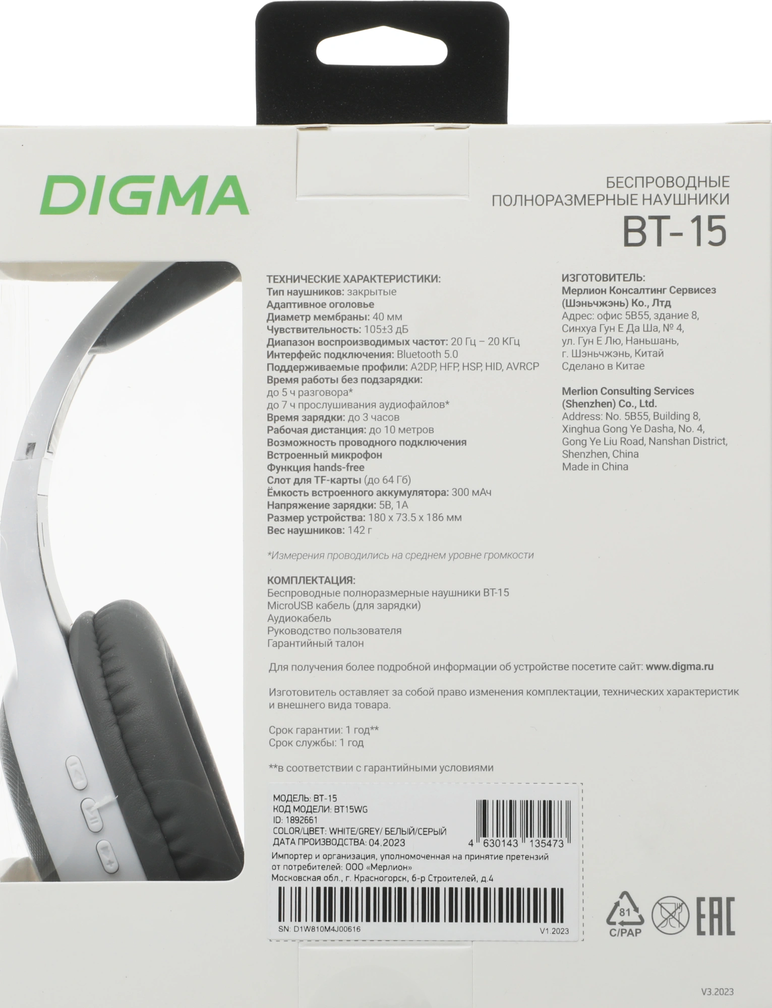 Выбирая Digma BT-15, вы выбираете надежность, комфорт и высокое качество звука.
