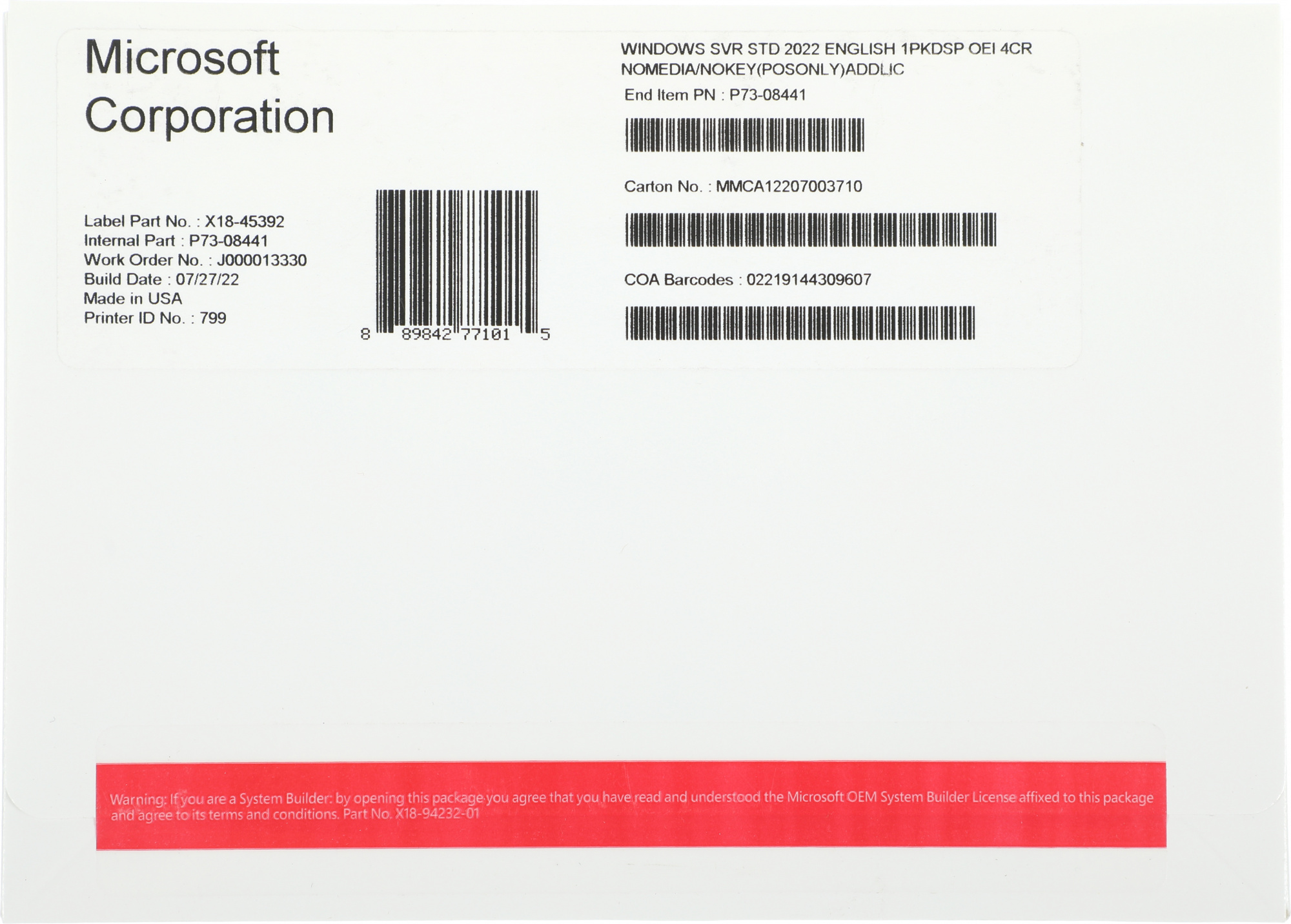 Windows Svr Std 2022
