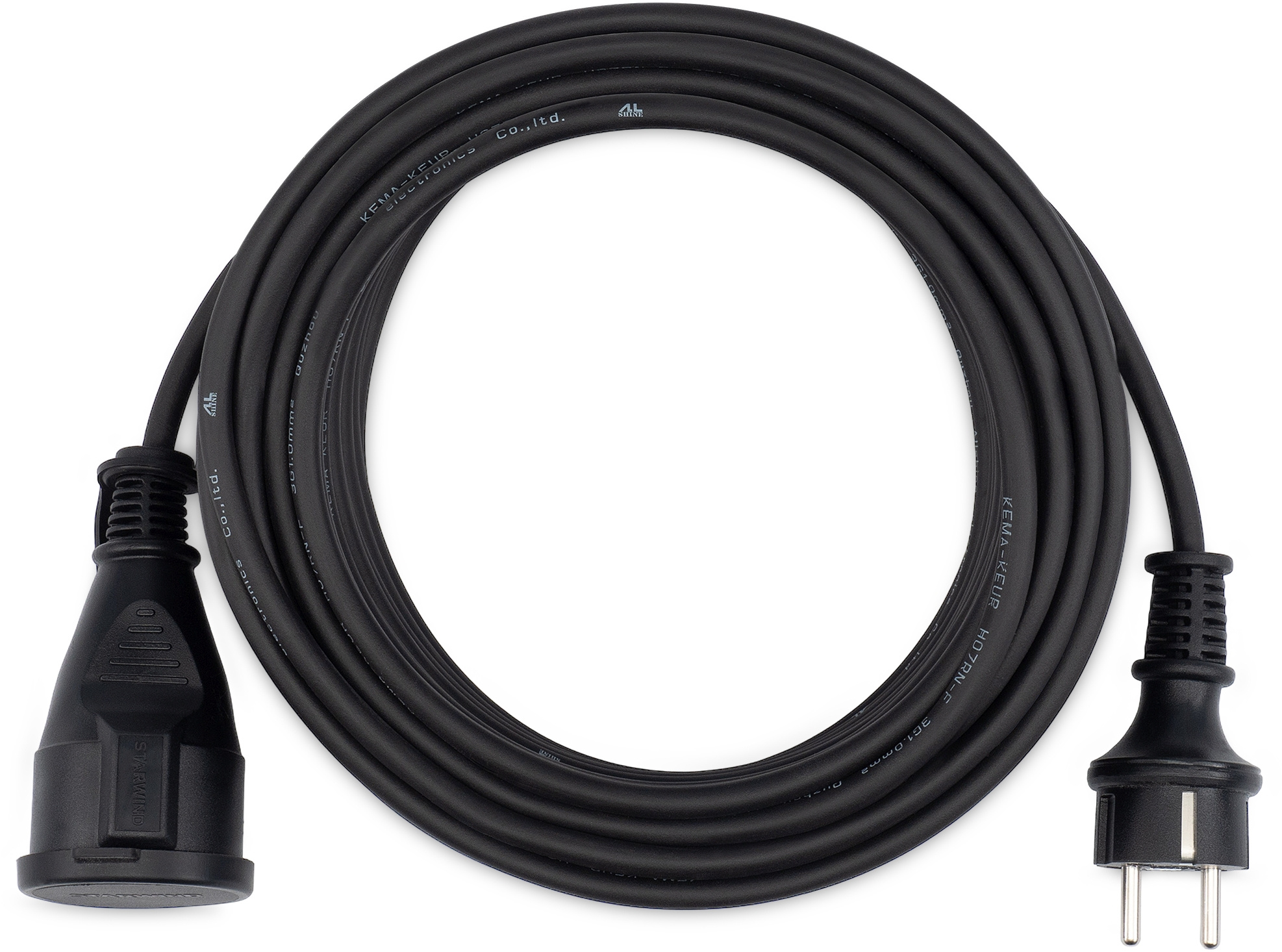 Практичный цвет. Черный цвет розетки, вилки и кабеля способствует удобству применения в любых условиях, в том числе при проведении грязных работ.