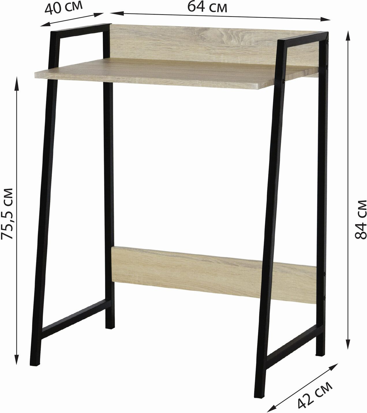 столешница МДФ дуб натуральный каркас черный 64x8...