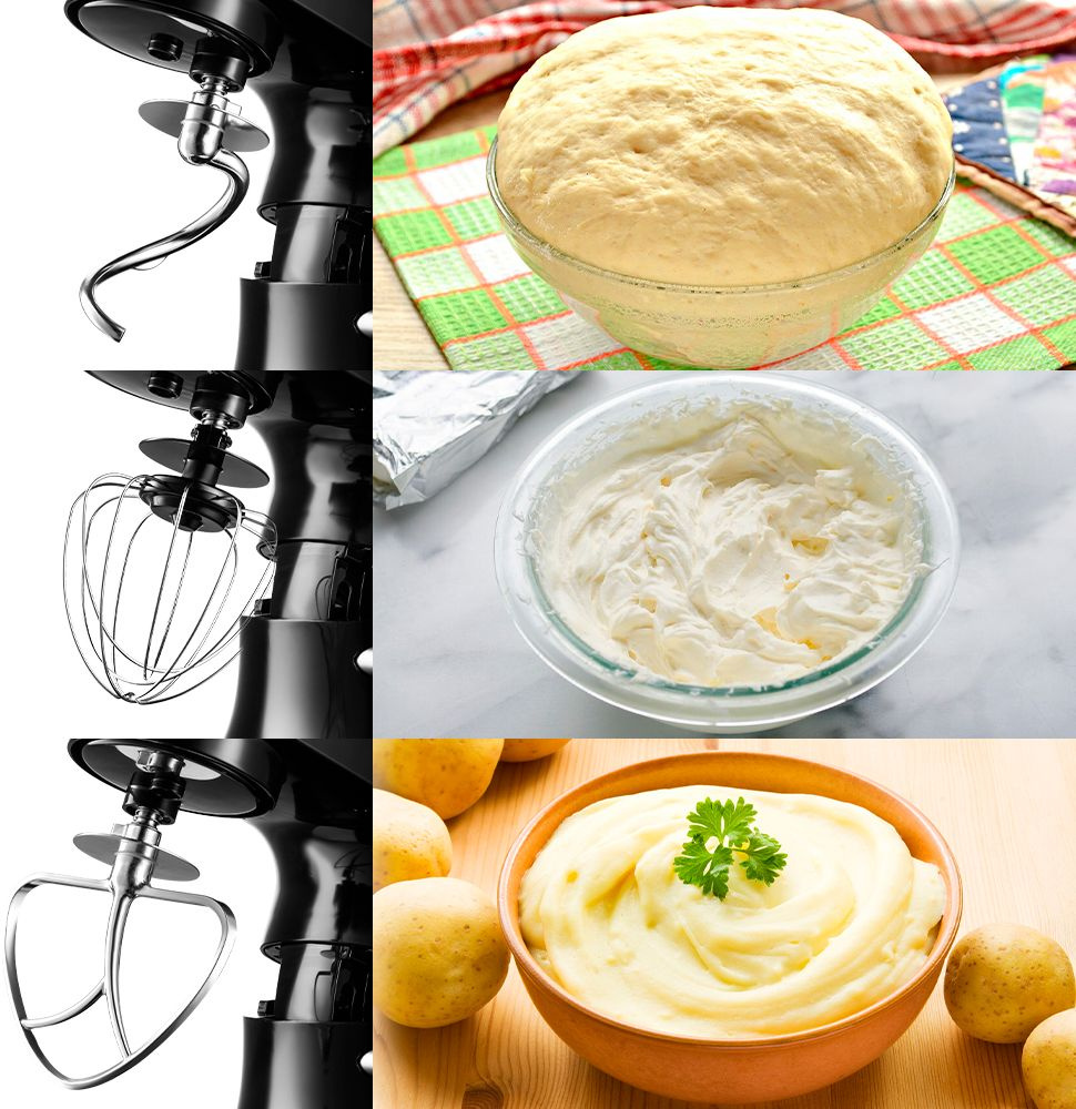 Многофункциональный и мощный планетарный миксер КТ-3061 поможет вам смешать ингредиенты, взбить яичный белок или сливки, приготовить картофельное пюре, соус, замесить тесто, приготовить фарш, смешать ледяной коктейль или смузи.