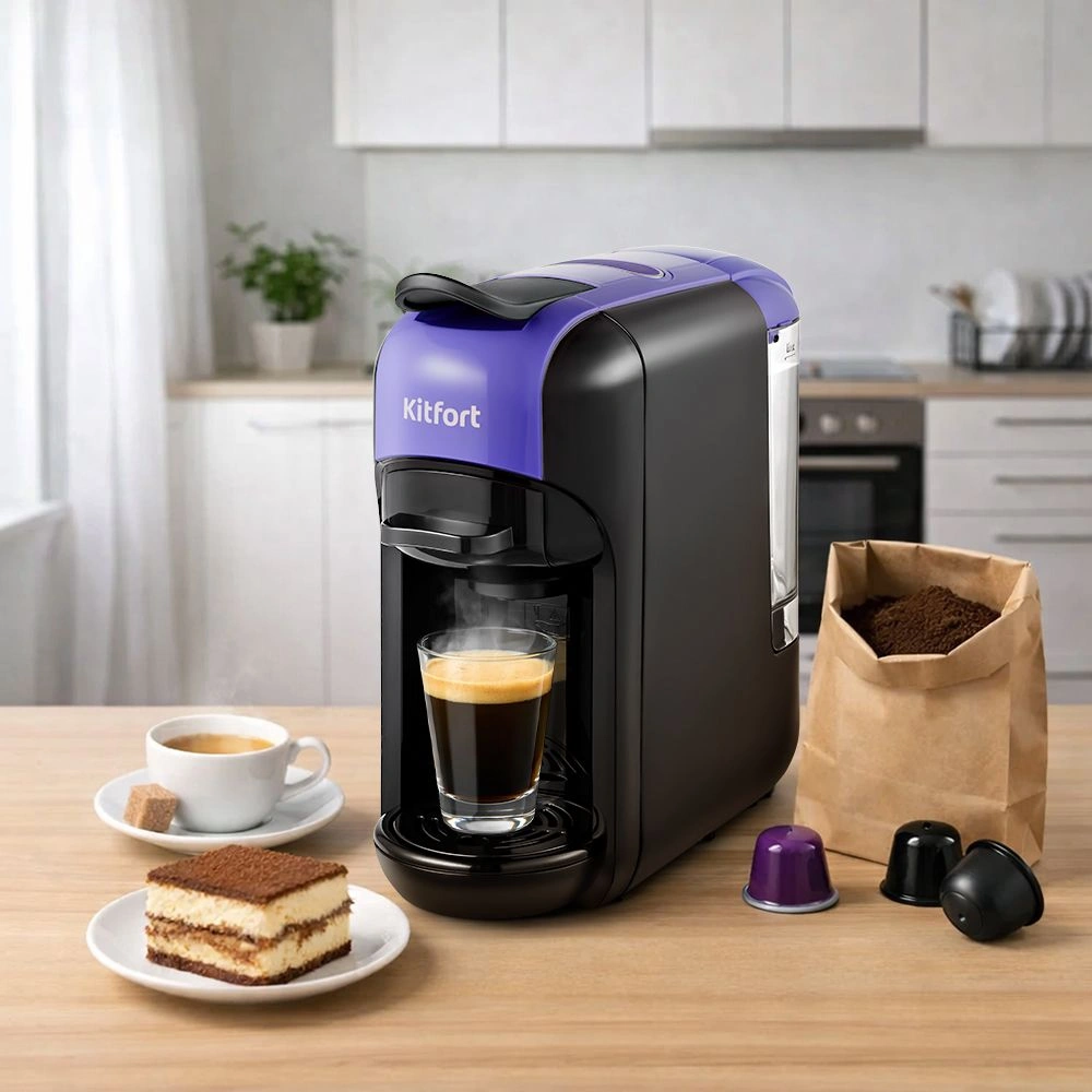 Кофеварка КТ-7105 - это многофункциональное устройство, сочетающее в себе функции капсульной и рожковой кофеварки. Она поможет приготовить кофе эспрессо, американо или лунго, а также множество других видов кофе на ваш вкус.