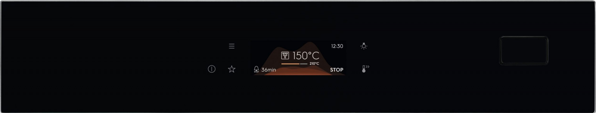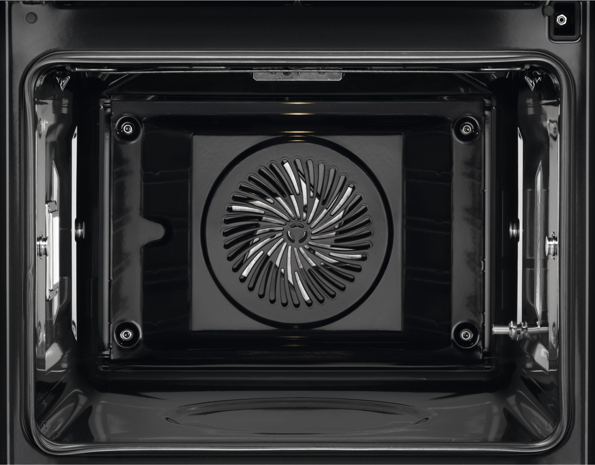 вентилятор охлаждения, двухуровневое освещение, дисплей, полностью стеклянная внутренняя поверхность дверцы духовки, телескопические направляющие, термощуп