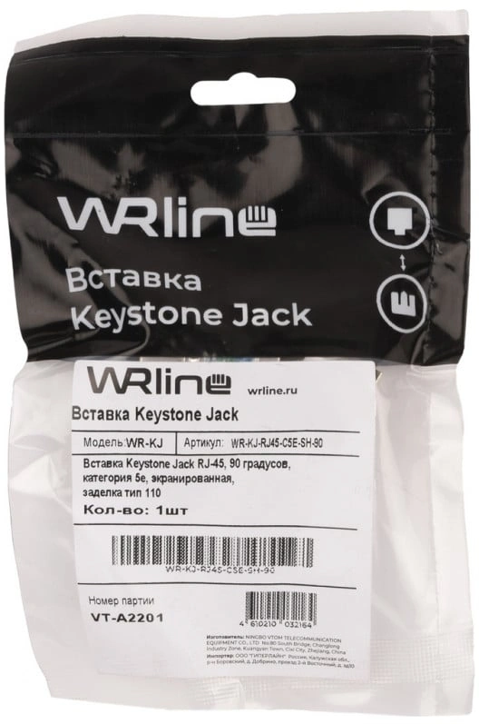 Модуль WRline WR-KJ-RJ45-C5E-SH-90 информ. KeystoneRJ45 1 кат.5E FTP черн.