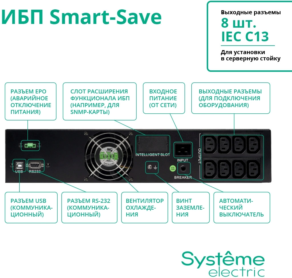 Выходные розетки типа IEC320 С13, с батарейной поддержкой