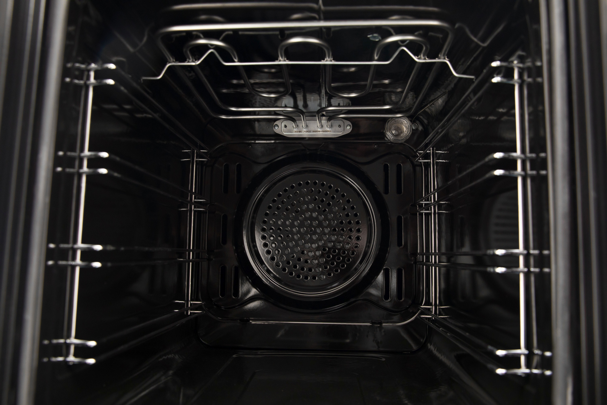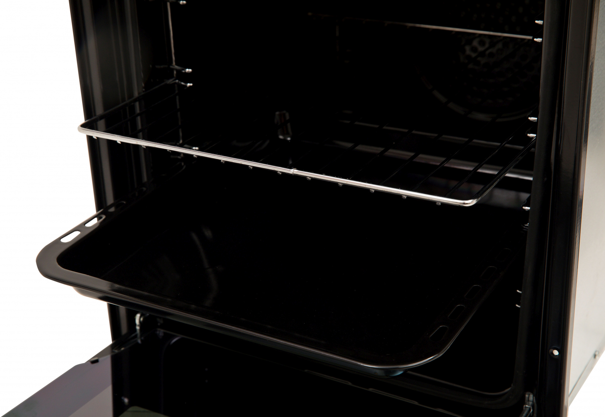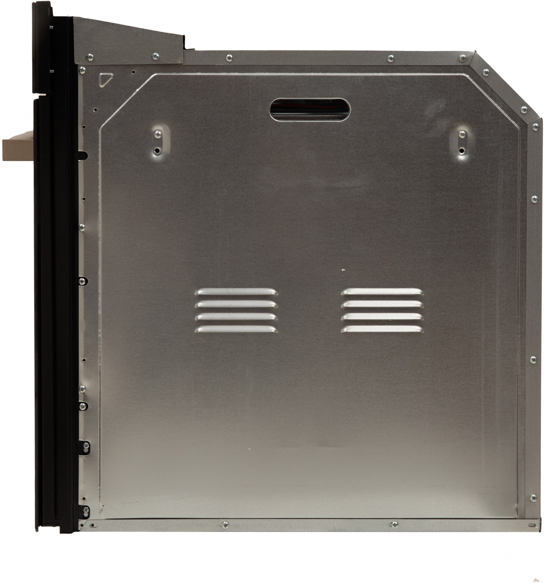 вентилятор охлаждения, выдвижная тележка духовки, дисплей, полностью стеклянная внутренняя поверхность дверцы духовки, утапливаемые переключатели