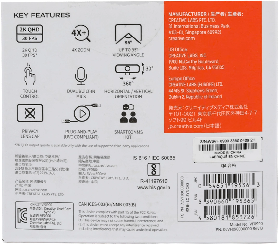 черный 5Mpix (2560x1440) USB2.0 с микрофоном (73VF...