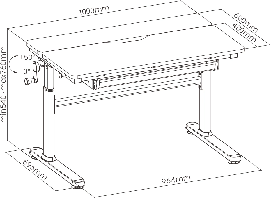 - Пневматический механизм для плавного изменения угла наклона столешницы: для чтения, обучения письму или рисования