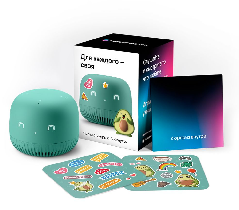 2 микрофона, дисплей, поддержка умного дома, сенсорное управление, музыка VK и голосовое управление видеосервисом Wink, эксклюзивный детский контент, стикеры в комплекте