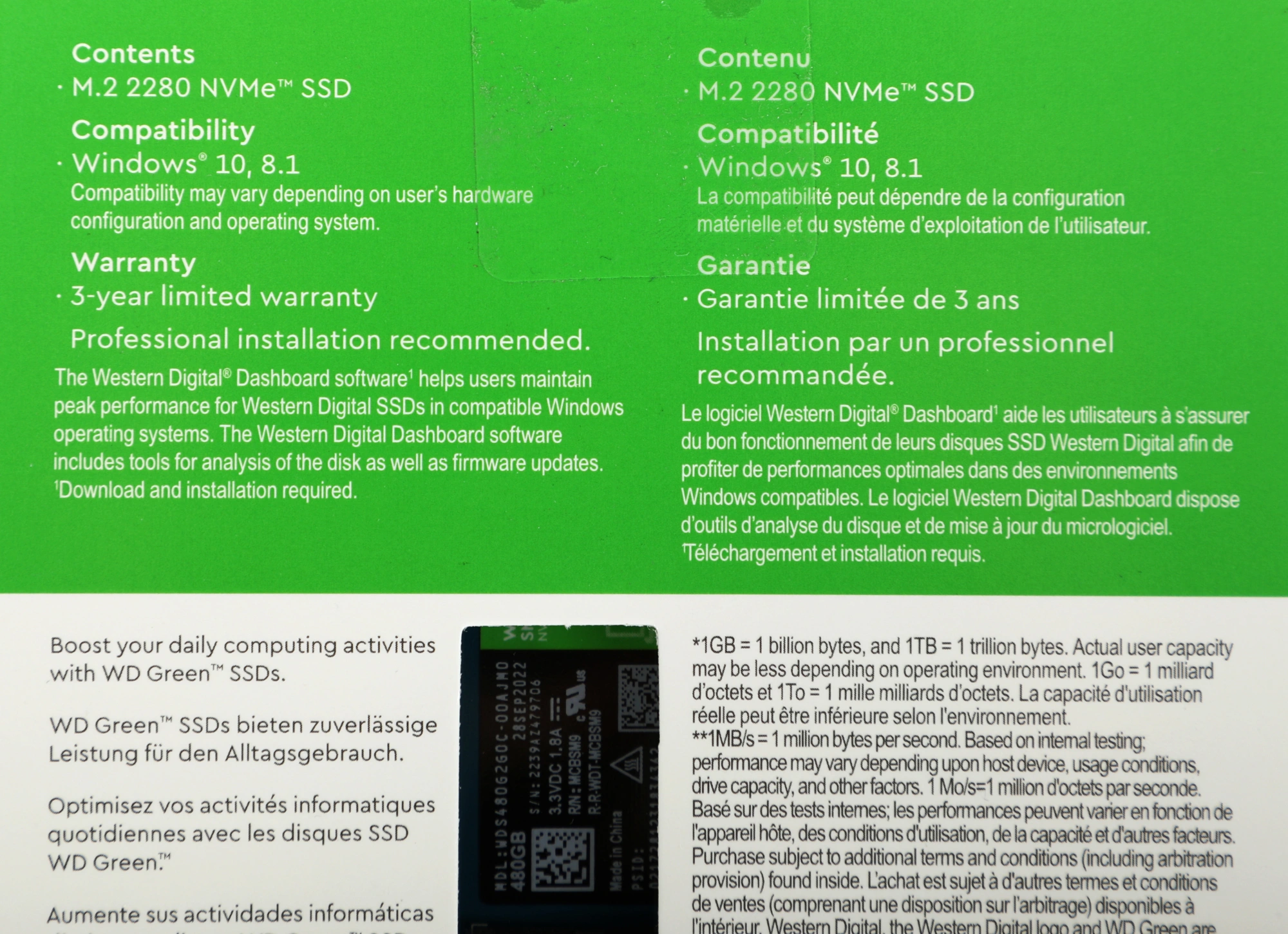 Накопитель SSD WD S PCIe 3.0 x4 480GB WDS480G2G0C