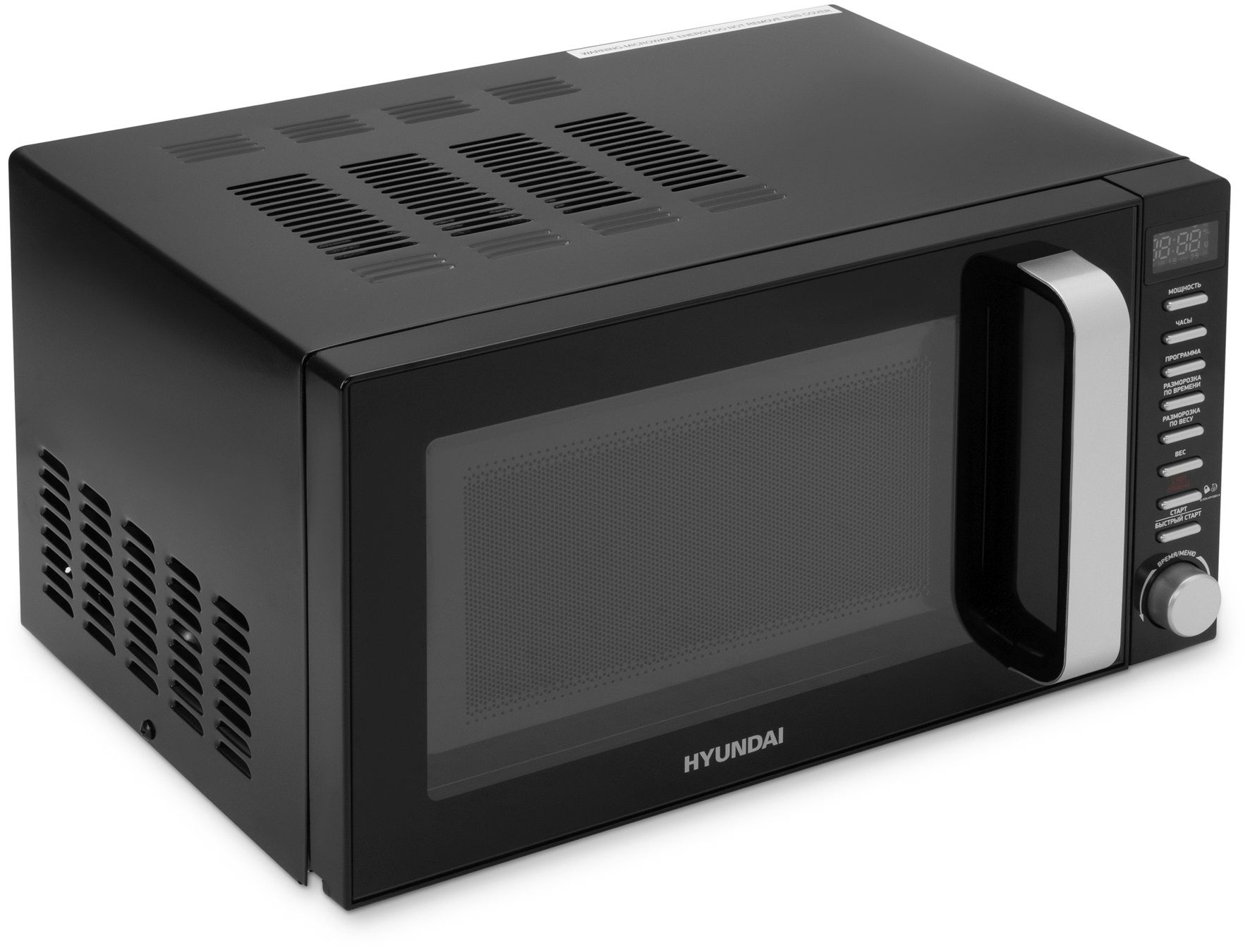 Hyundai HYM-D3034 – микроволновая печь в невероятно стильном и практичном черном корпусе с хромированной ручкой на дверце. Она прекрасно впишется в любой современный интерьер.