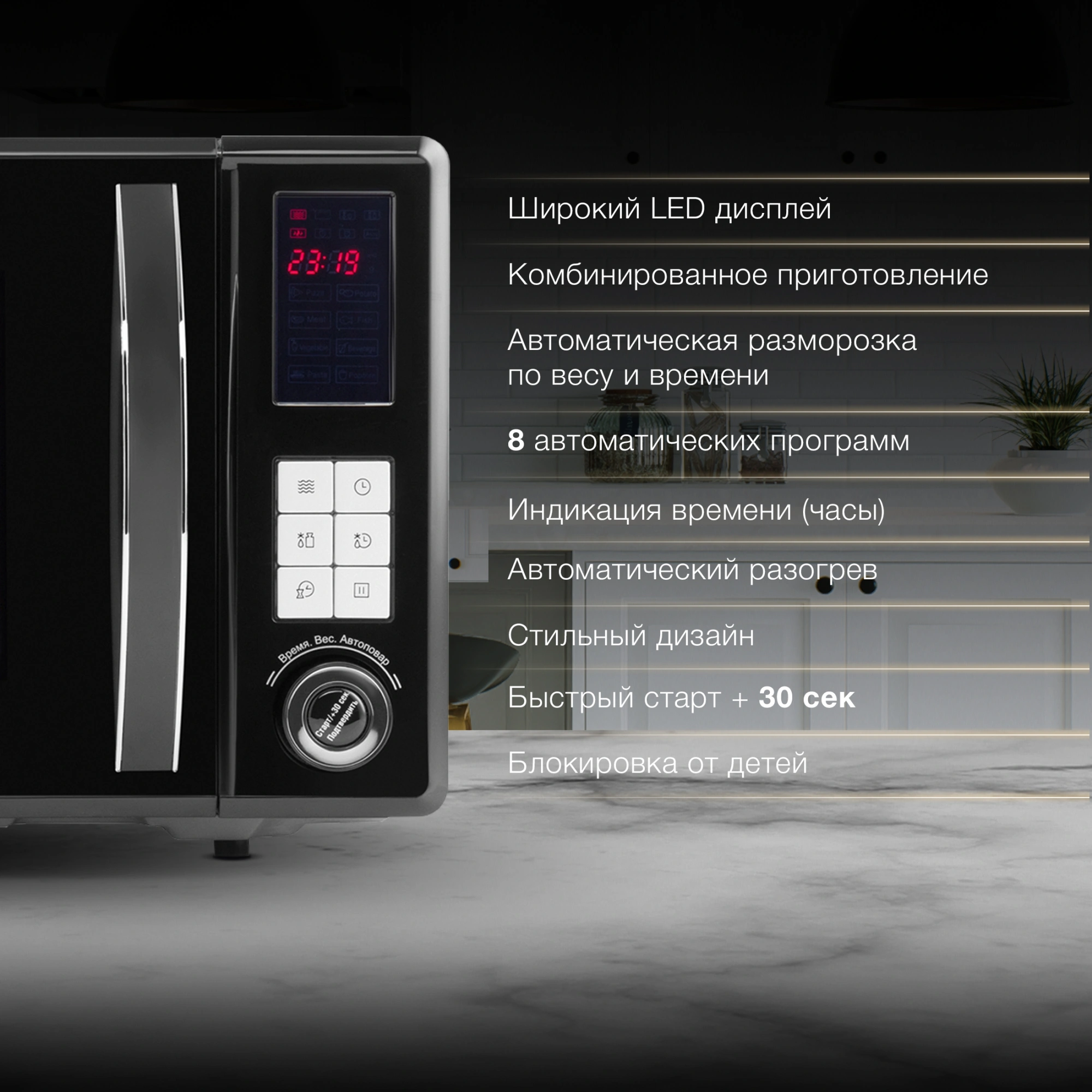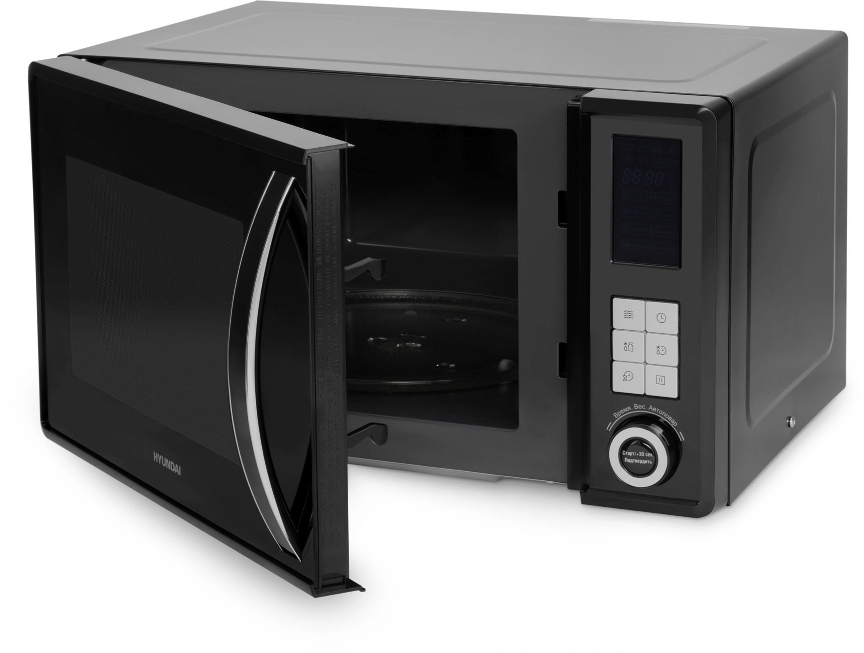 Микроволновая печь Hyundai HYM-D3009 оснащена удобным и интуитивно понятным электронным управлением. С помощью шести кнопок можно настроить параметры мощности, задать нужное время, запустить таймер. Удобный поворотный переключатель поможет выбрать нужные автоматические программы с заранее установленными временем и температурой. Они помогут моментально запустить приготовление пиццы, попкорна, овощей, рыбы и других продуктов. На широком цифровом дисплее отображается не только время приготовления, но и подробная информация о приготовлении блюда. Дверца микроволновки открывается за ручку, что делает устройство надежным и простым в эксплуатации.