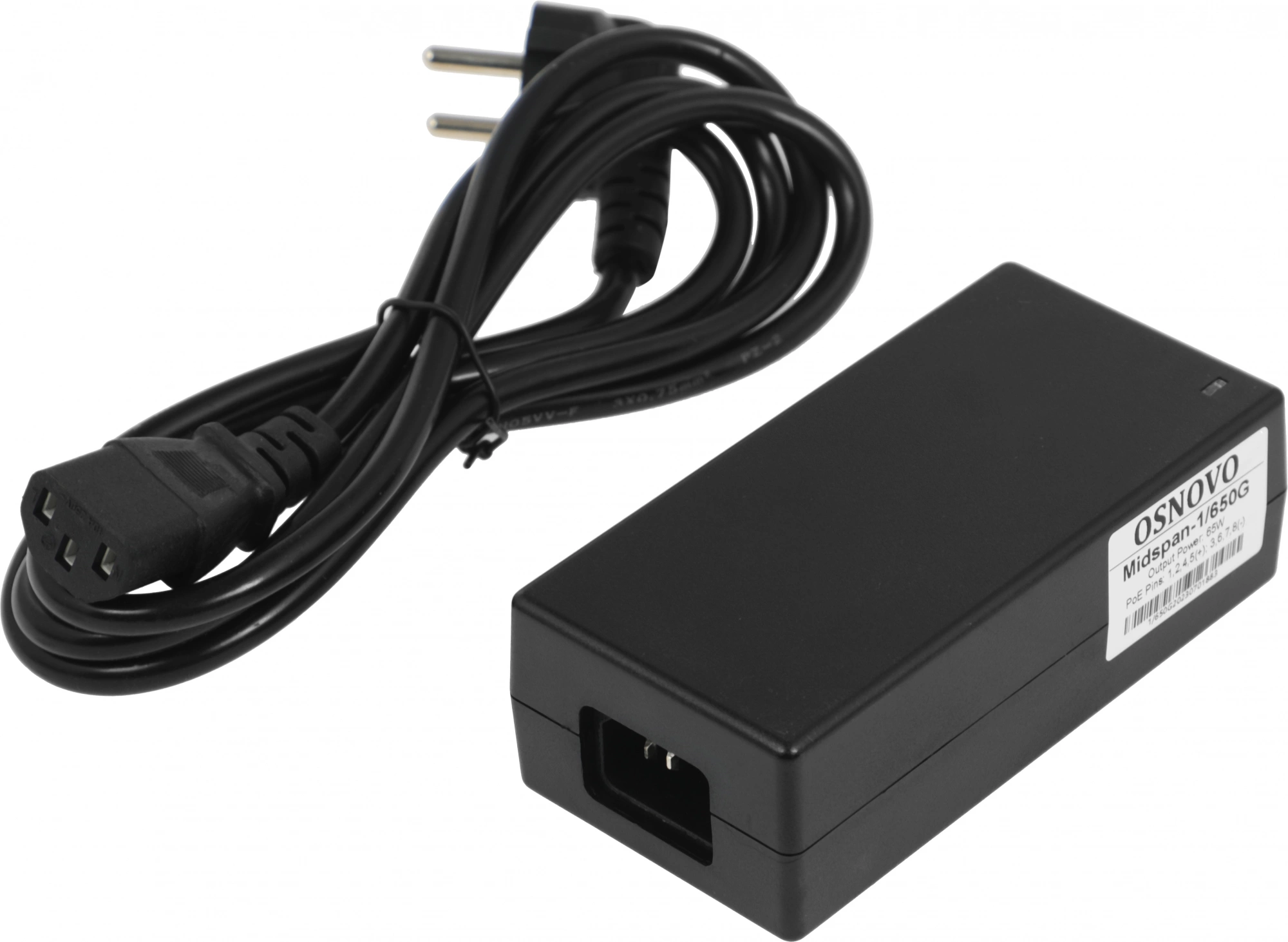РоЕ-инжектор Osnovo Midspan-1/650G оснащен входным RJ-45 и выходным RJ-45 с PoE. Скорость передачи — 10/100/1000 Мбит/с. Бюджет РоЕ — 65 Вт.