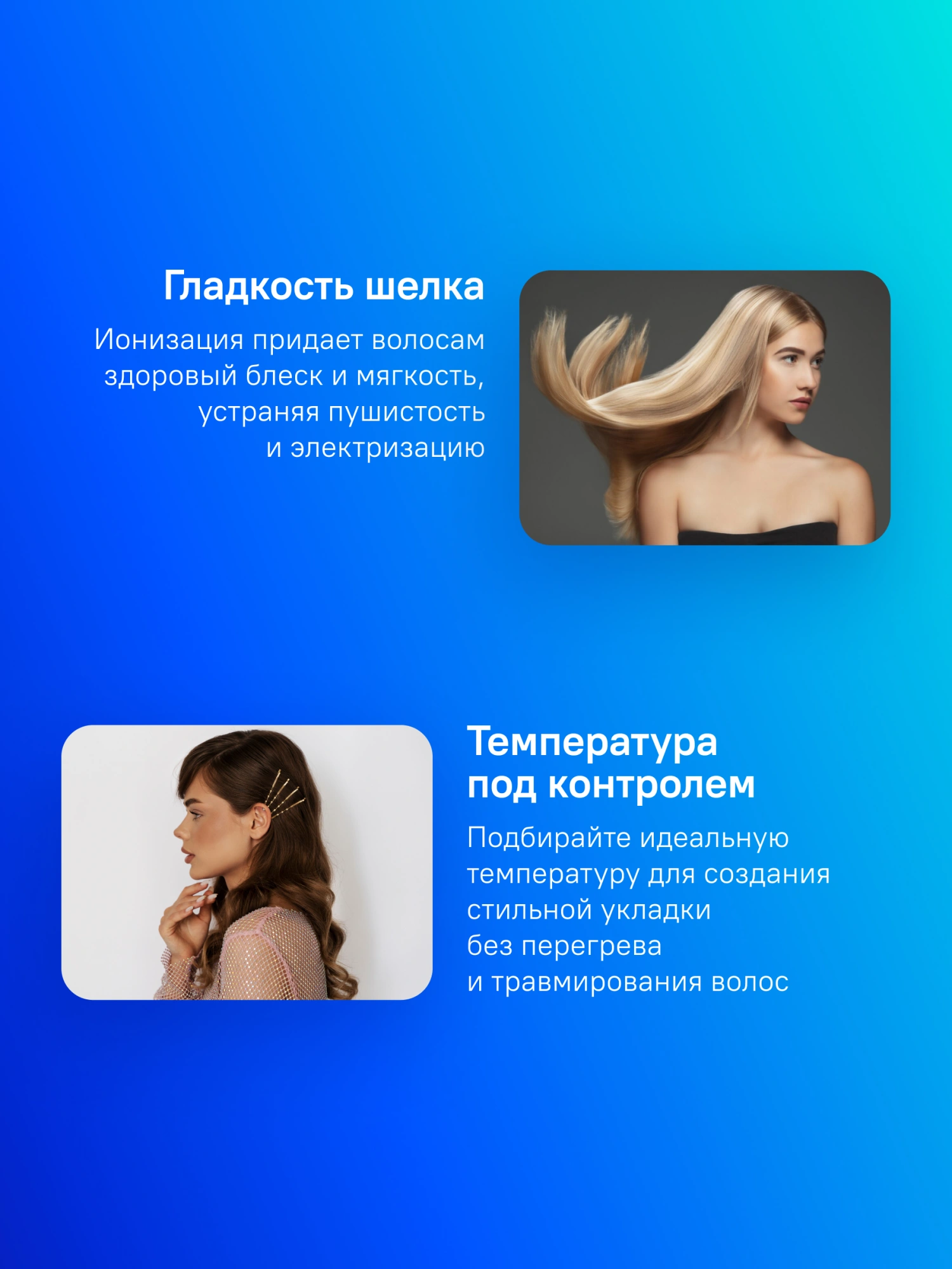 Инновационная разработка. Идеальное сочетание керамических пластин и холодного воздуха позволит создать идеальную укладку, которая продержится целый день. Керамические пластины разглаживают волосы, а благодаря внешнему обдуву пластин холодным воздухом локон фиксируется,становясь гладким и блестящими
