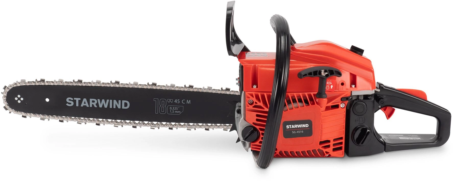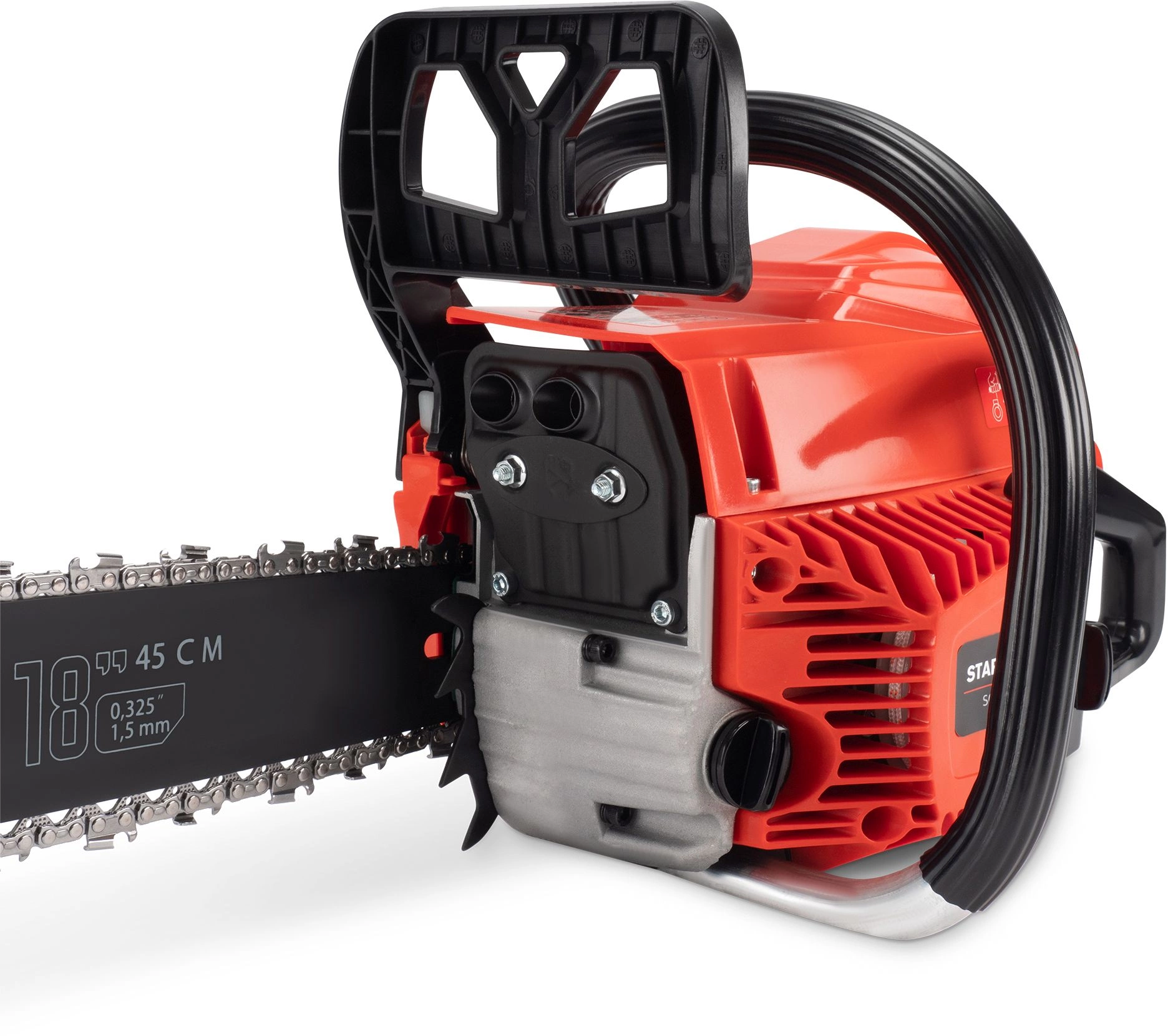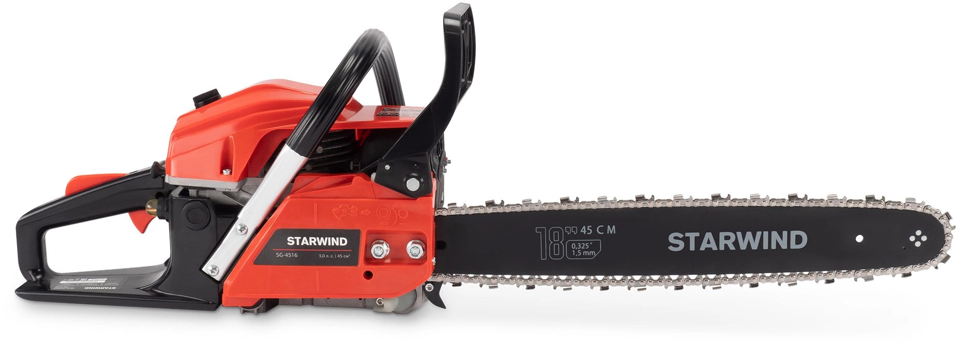 Благодаря шине длиной 18 дюймов (45 см) Starwind SG-5218 обеспечивает идеальный баланс между маневренностью и производительностью, позволяя вам обрабатывать деревья различных размеров.