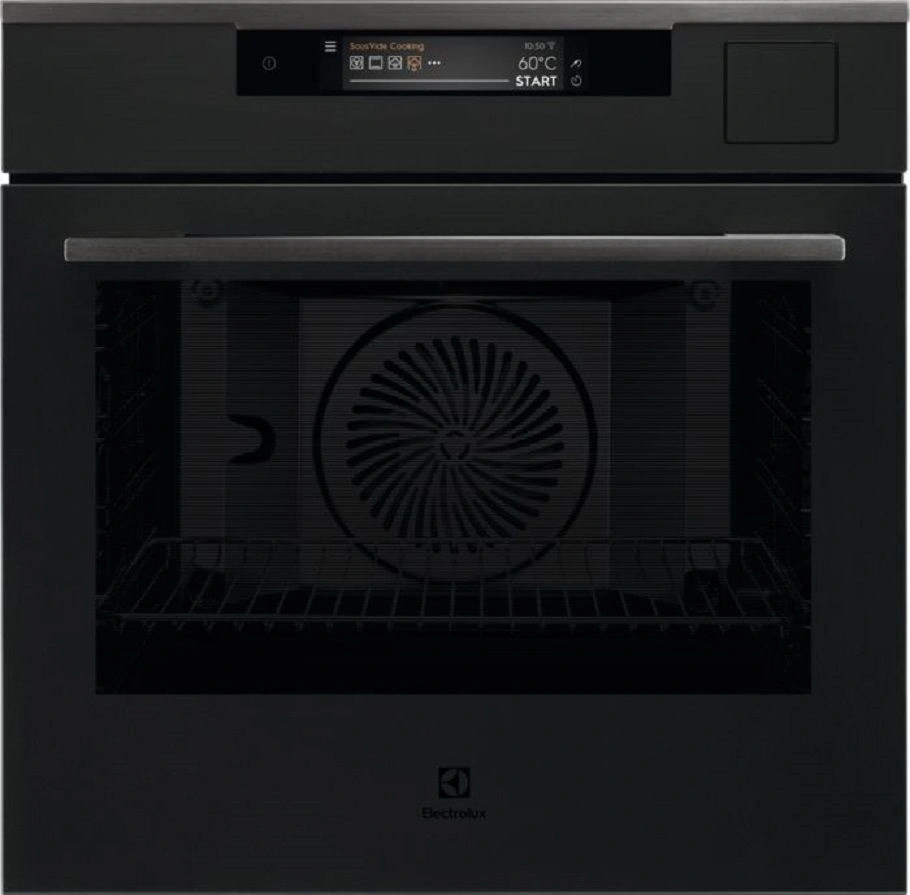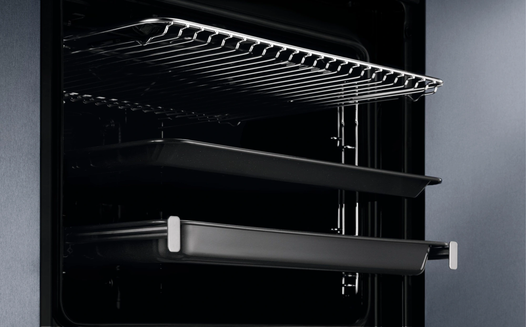 вертел, дисплей, полностью стеклянная внутренняя поверхность дверцы духовки, телескопические направляющие, термощуп, электронный программатор
