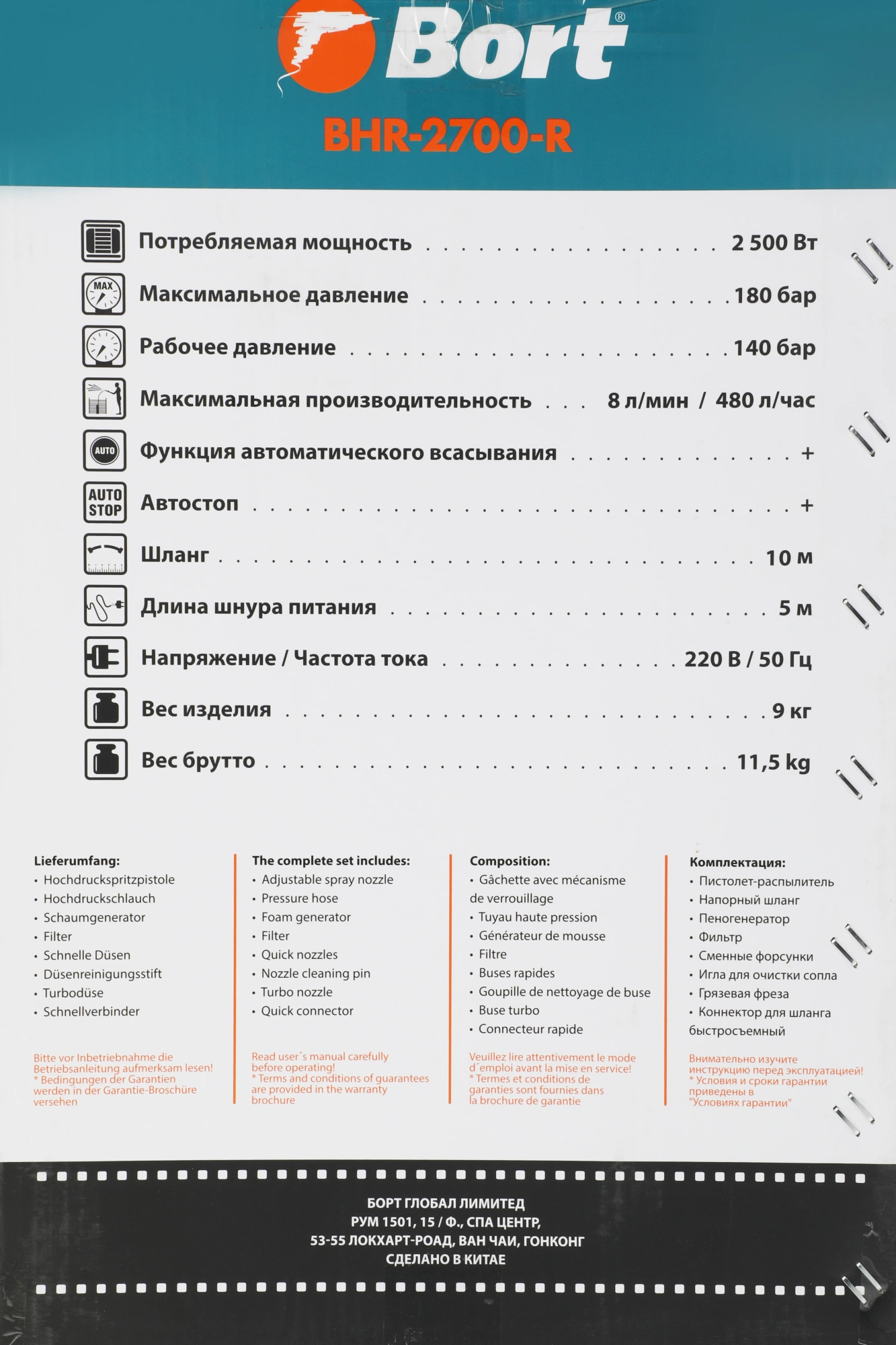 Длина шланга высокого давления